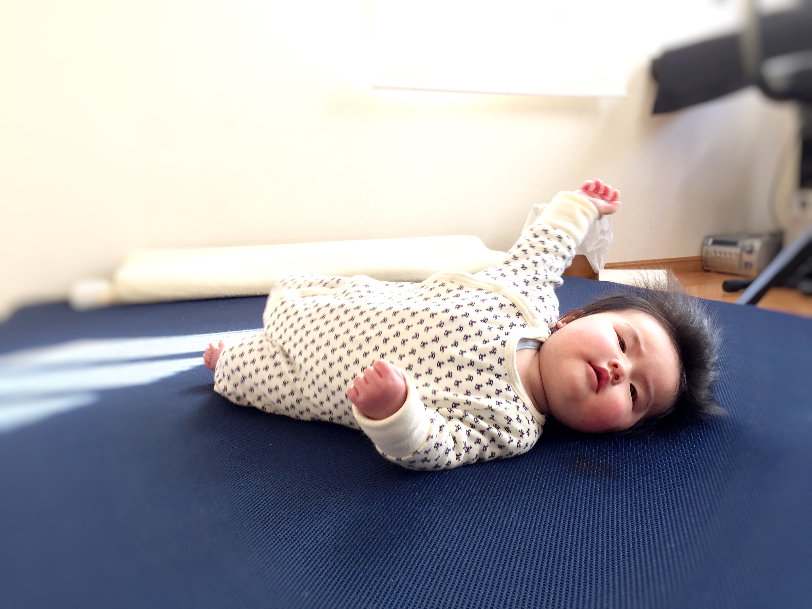 頑張り屋さん。 めいさん日記 2016.01.28 めいさん、自主的に寝返りの練習をし始めました。あと、もうちょっと!頑張れ、めいさん! あともう少しというところで、くるんともとの体勢に。楽しそうに何度か寝返りにチャレンジしていましたが、出来ないのが悔しいのか最後には泣き出しちゃった負けず嫌いなめいさんです。 コメント こうすけ より: 2016-01-28 12:02 がんばれ!めいさん! 返信 ようこ より: 2016-01-28 12:04 パパ、ありがとう!めい、頑張るよ!お休みの日、特訓に付き合ってね^_^ 返信