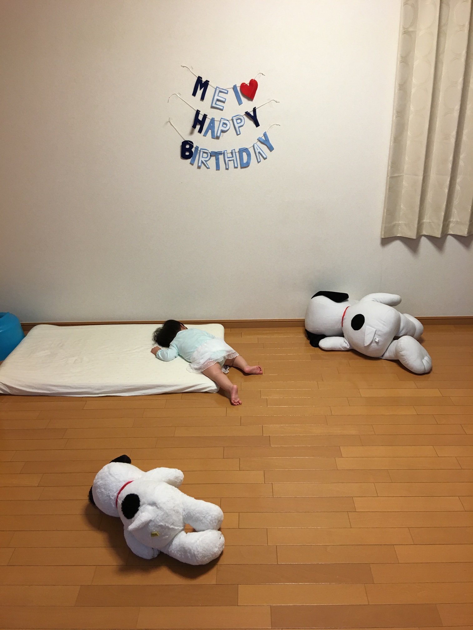 昨日でめいさんは1歳になりました!少しお姉さんになったよ!パパに抱っこしてもらってご機嫌。これからもよろしくお願いします^_^