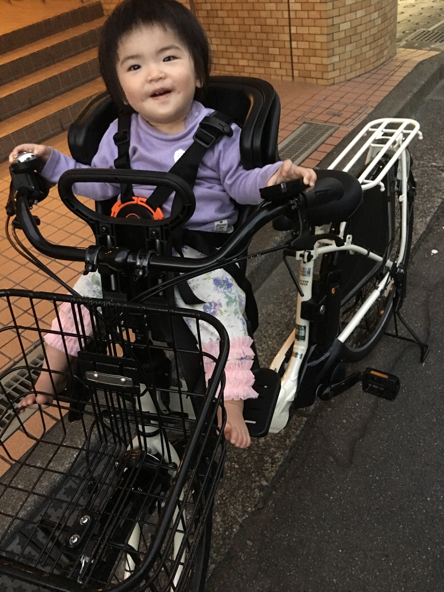 電動自転車が来ました。 めいさん日記 2016.10.16 引越して坂道が多くなったのと、めいさんの体重が増えてきたので、我が家もとうとう電動自転車を買いました。 なんだかめいさんがハンドル握ってるように見えます。 明日からこれで保育園に登園します。今までは抱っこひもで坂道を20分ほど歩いて電車乗って行ってましたが、電動自転車だと坂道も楽々で15分で行けそうです。 コメント ピンさん より: 2016-10-17 10:58 前髪が短くなっちゃって…(^。^)カワイイ! チャリ漕ぎ、2人とも頑張れ‼︎ 返信 りえ より: 2016-10-18 10:38 外に出るときは靴を履こう。 返信