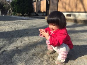 砂遊びを楽しむめいさん。