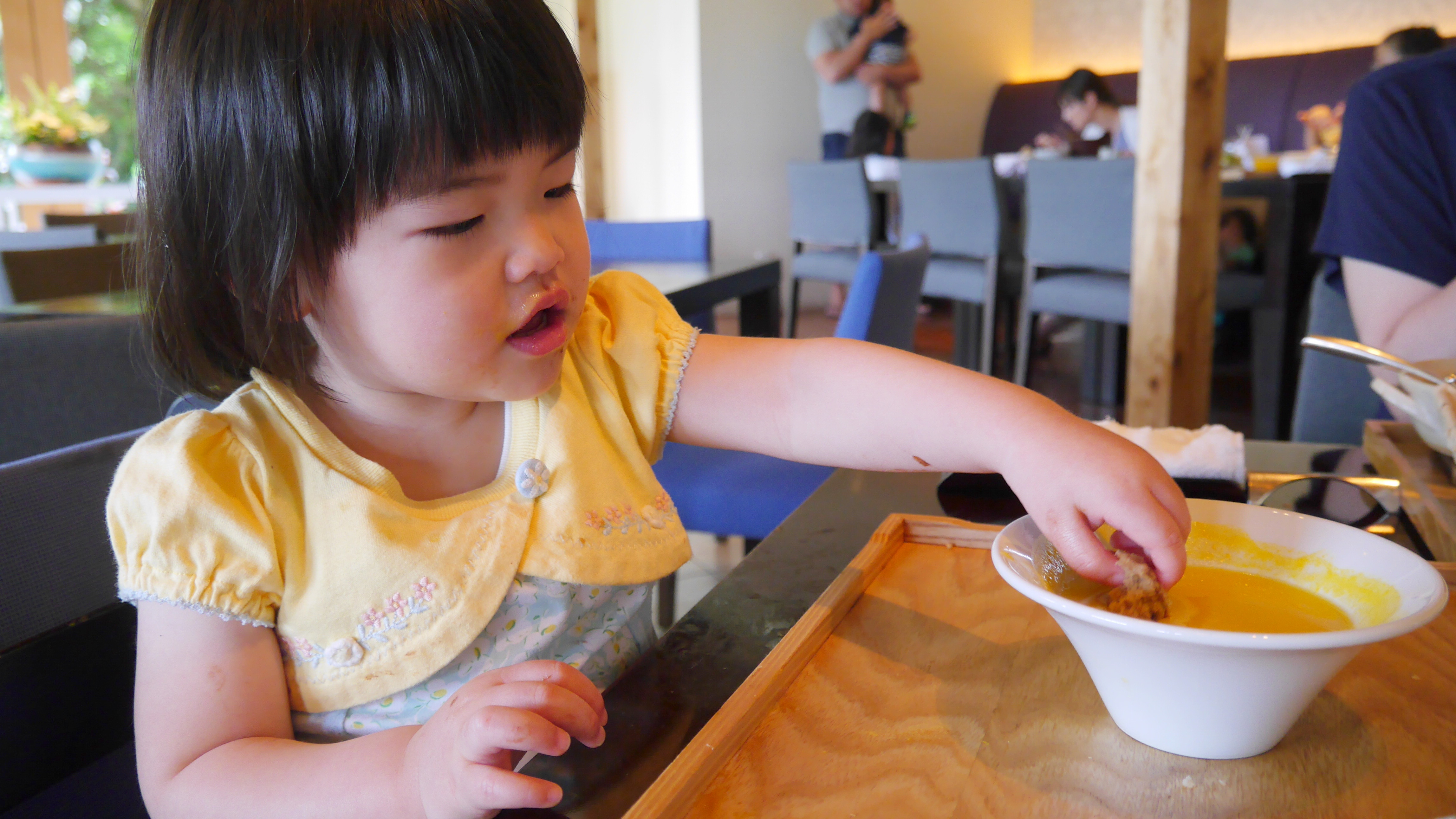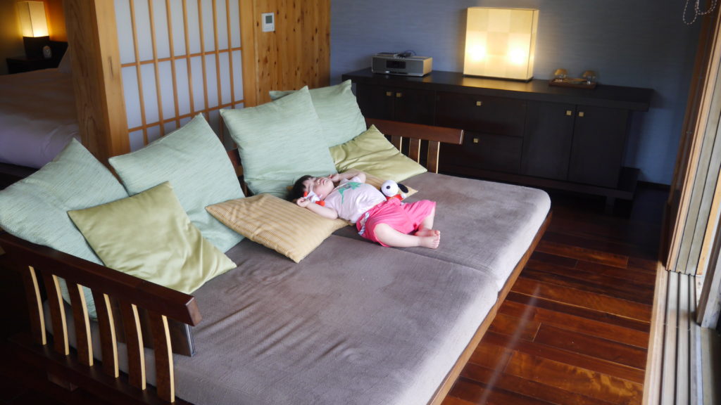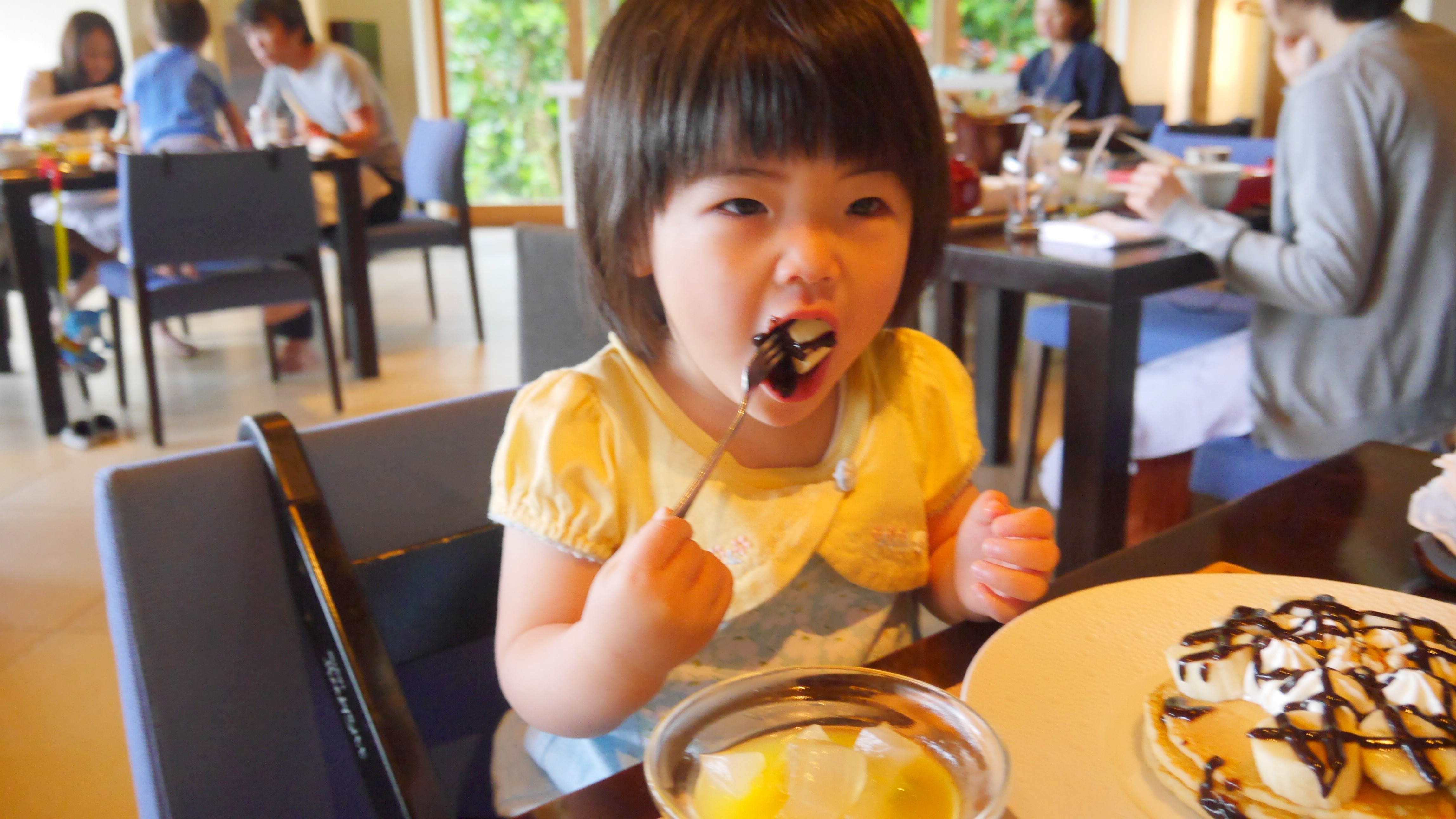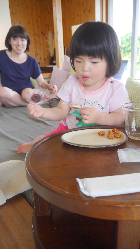 GW沖縄旅行3日目 めいさん日記 2017.05.022022.12.28 ホテルでの朝食です。 パパは伝統的な琉球料理。 ママは南仏料理。 めいさんはチョコバナナが乗ったパンケーキ。 ママにおねだりしたパンをかぼちゃスープにつけて食べています。 おシャンティなコーヒーカップ。 ホテルのスタッフの人にしょくぱんまんのぬいぐるみをもらってご機嫌のめいさん。 食後はホテルの敷地内にある芝生でくつろぎました。 めいさん「ホットコーヒーは落ち着きますなあ。」 ※ めいさんが飲んでいるのは冷たい麦茶です。 お庭のサンゴで遊びました。 昼食。 食後はゆんたくラウンジで休憩。 めいさん、シークァーサージュースをがぶ飲み。 3人で一緒に食べようと思って取ってきたかりんとうとちんすこうをめいさんに独り占めされてしまいました。 窓からは芝生とプールが見えてとても気持ち良かったです。 プールを見て興奮するめいさん。 部屋に戻るとソファで落ちてしまいました。 パパは三線(さんしん)のレッスンを受けました。涙そうそうを弾けるようになりました。 夕食は沖縄の食材をふんだんに使ったフレンチでした。 めいさんはお子様セットを堪能しました。下の写真はめいさんがしょくぱんまんにスープをあげているところです。 3人で記念撮影。 パパの誕生日を少し早めにお祝いしてもらいました。 部屋に戻って三線を奏でながらのんびり過ごしました。 コメント