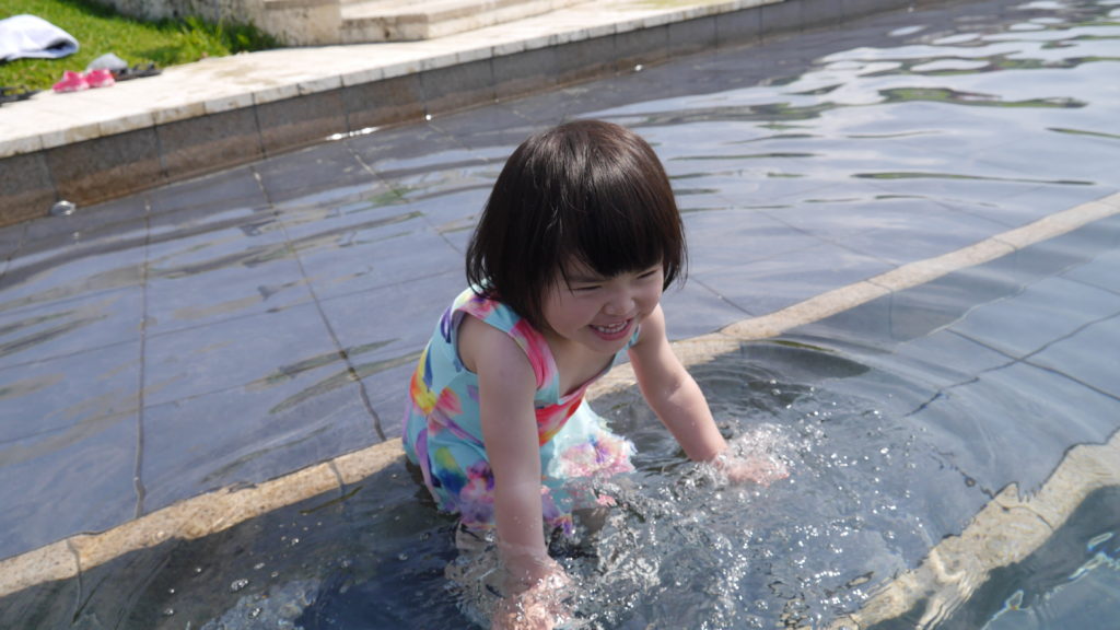 GW沖縄旅行4日目 めいさん日記 2017.05.032022.06.06 ママは早起きしてホテルから歩いて5分くらいにあるビーチで朝日を見ながらヨガを体験しました。注)パパとめいさんはお部屋でねんね。 ホテルの敷地内で咲いていた月桃(げっとう)。この時期、島は月桃の香りに包まれます。 今日の朝ご飯はゆし豆腐がゆ。 ママがスパに行っている間、めいさんとパパはプールで遊んできました。 竹富島をあとにして、石垣島に戻ってきました。海の見えるカフェでランチをいただきました。 レンタカーでミルミル本舗というジェラート屋さんに行きました。 海をバックに撮影。後ろに見えるのが竹富島です。 石垣島のホテルにチェックインしました。めいさんはいつものようにベッドにダイブ! 部屋からの眺め。目の前には海!! ミニライブを聴いてるめいさん。 沖縄最後の夜は石垣牛を堪能しました。 コメント