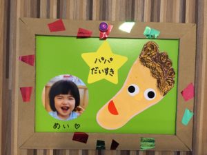 父の日と母の日にめいさんからのプレゼント。制作しながら、『目』、『鼻』、『口』と言っていたそうです。