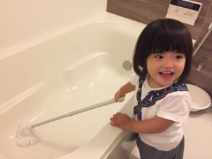 お風呂掃除をするめいさん。 めいさん日記 2017.08.11 パパがお風呂掃除をしていると、『めいさん!めいさん!』(めいさんがするという意味)と言うので、ブラシを渡すと上手にゴシゴシしていました。 コメント