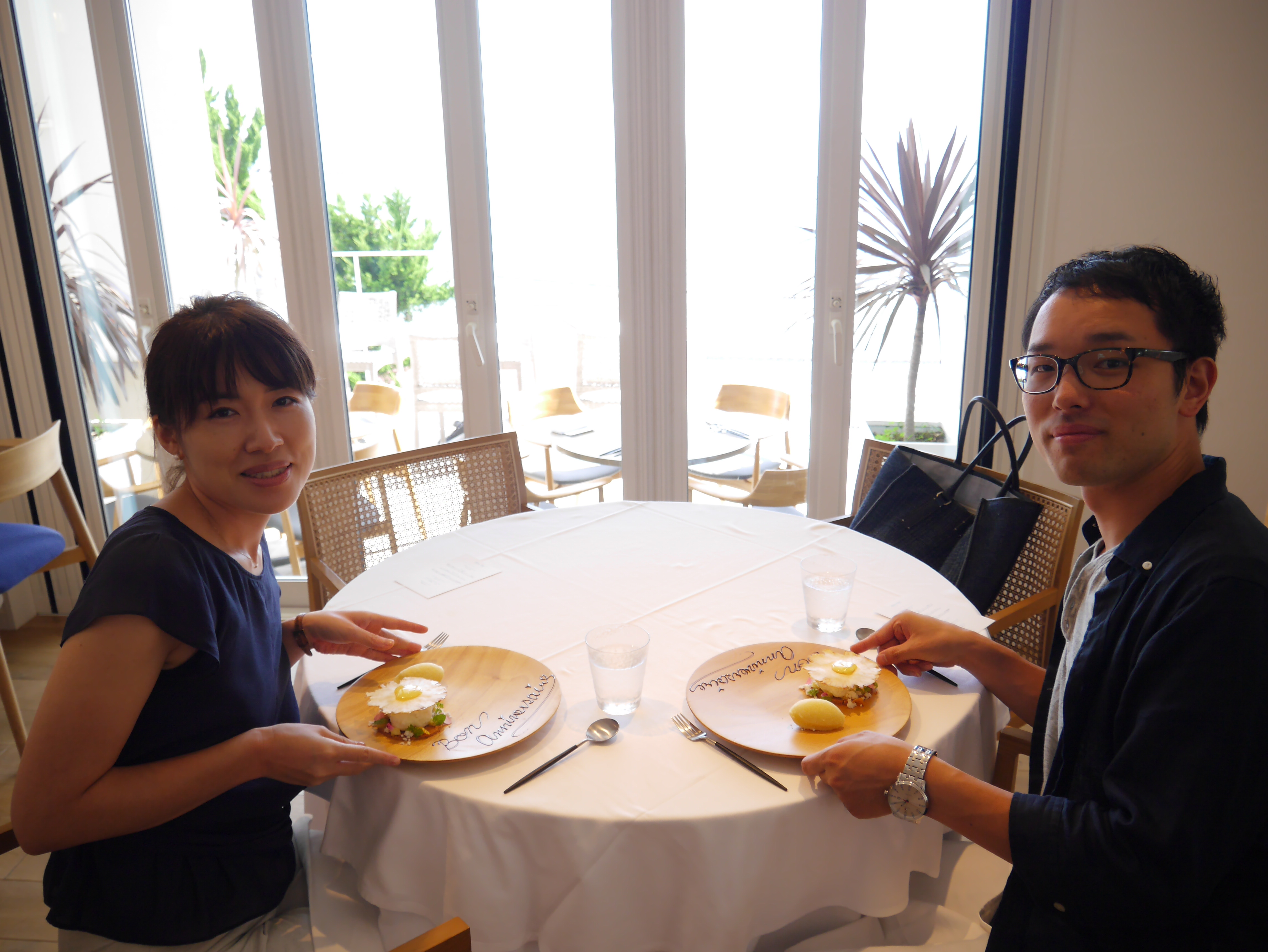 結婚4周年 パパママ日記 2017.08.25 昨日、結婚4周年のお祝いで、鎌倉にあるバスティーズという海の見えるレストランに行ってきました。 スパークリングジュースで乾杯しました。(ちなみにめいさんは乾杯のことを「ぱんかーい」って言います。) お品書き。 鎌倉の新鮮な食材を使った南仏風料理です。 枝豆ビシソワーズ。 相模湾で獲れた鯛のカルパッチョ。 サーモンの大葉巻き。 ローストポーク。 本日のデザートプレートに結婚記念のお祝いメッセージを添えてくださいました。 食後のプチデート。 これからもよろしくお願いします。 コメント ピンさん より: 2017-08-25 18:33 そうなんだ、もう4年… 4周年、おめでとう‼️ 私は、ただただ、ヨーコちゃんに感謝❣️です 返信 葉子 より: 2017-08-25 19:44 ありがとうございます 孝輔くん、岡山、兵庫の家族、そして可愛い笑顔を見せてくれるめいさんに感謝!です 返信