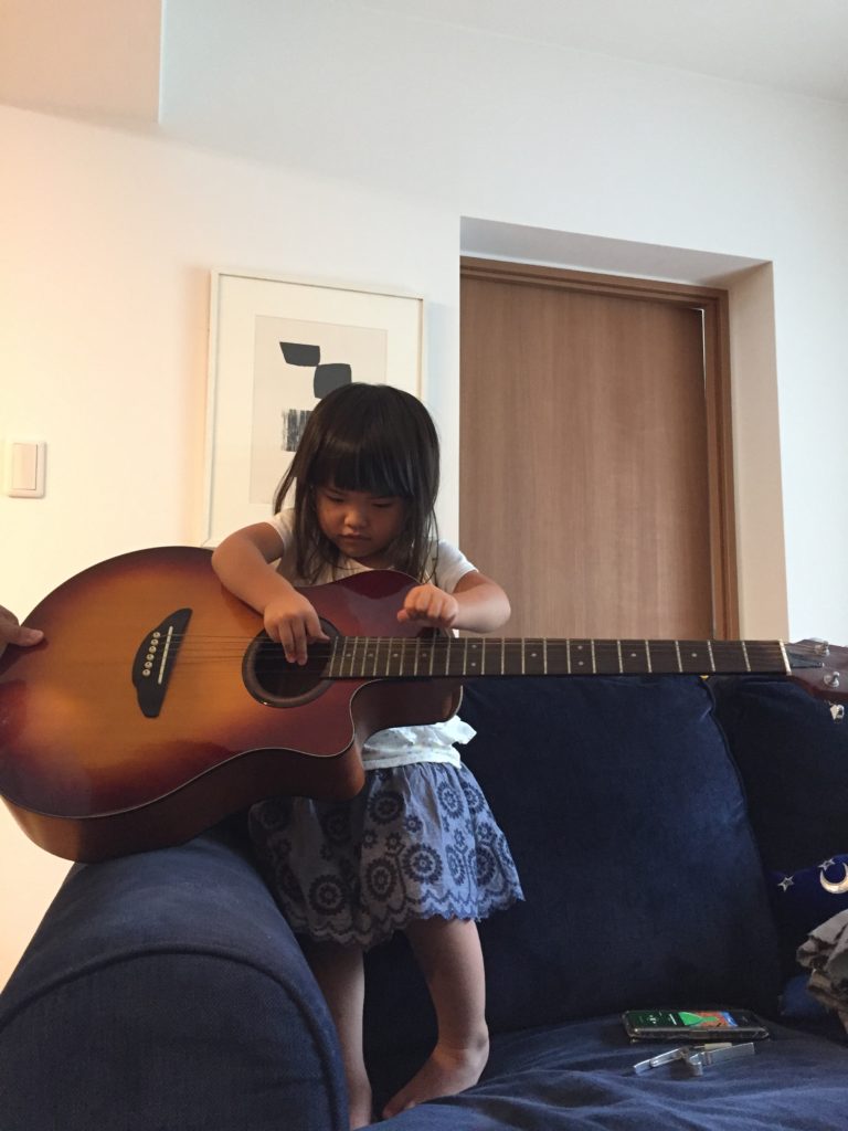 こうちゃんから、ギターを教えてもらっています。