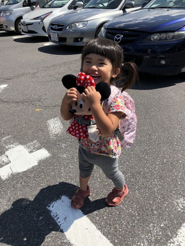今回の旅のお供にめいさんはミニーちゃんをおうちから連れてきました。