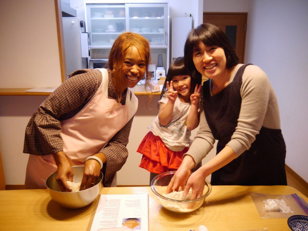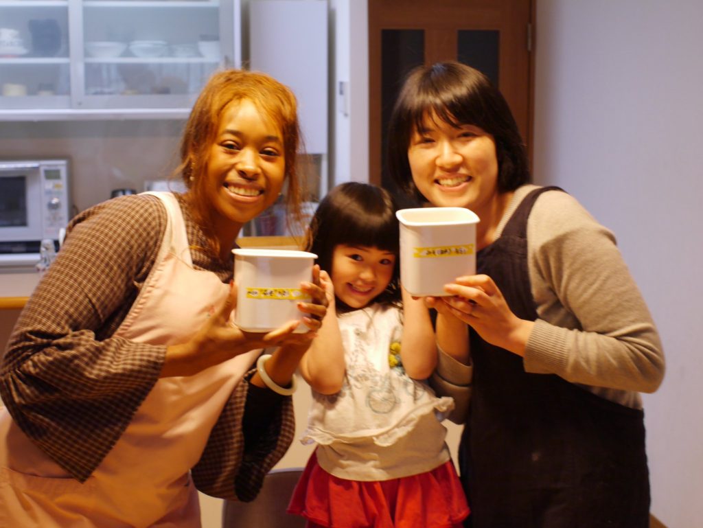 味噌作り めいさん日記 2019.03.23 今日は以前に airKitchen(https://airkitchen.jp/) で来てくれたお友達が、我が家へ味噌作りを体験しに来てくれました。 まずは大豆を手でつぶしていきます。 めいさんもいっしょにもみもみ。 塩と麹を混ぜます(塩切り麹)。 美味しいかどうか分かりませんがめいさんは塩切り麹を味見してます。 めいさんもお手伝い。 空気が入らないように手で平らにしていきます。 できあがりーー。 ハイタッチ!めいさんは Hello や Yammy など時々英語を使って会話していました。 車麩と根菜の自家製甘酒バーベキューソース和え、自家製切り干しダイコンと人参のきんぴら、畑で採れた春菊のピーナッツバター和え、畑の菜の花ご飯、カブの葉と油揚げのおみそ汁。 いただきまーす! コメント