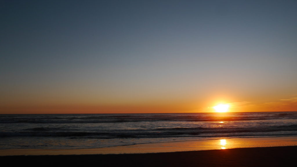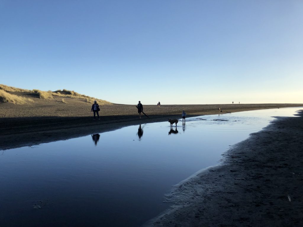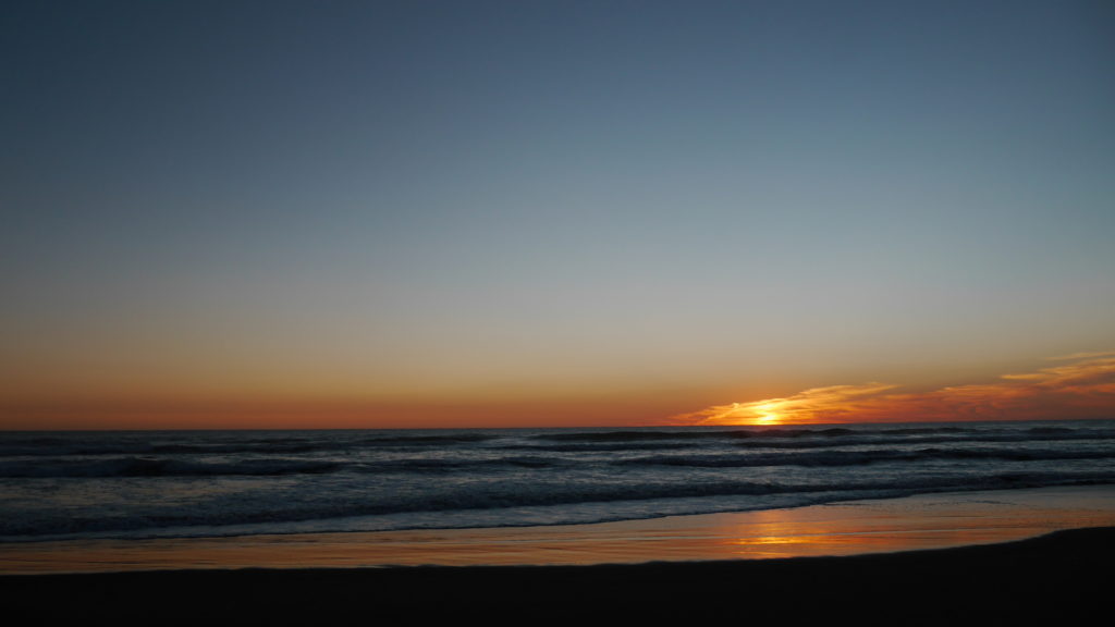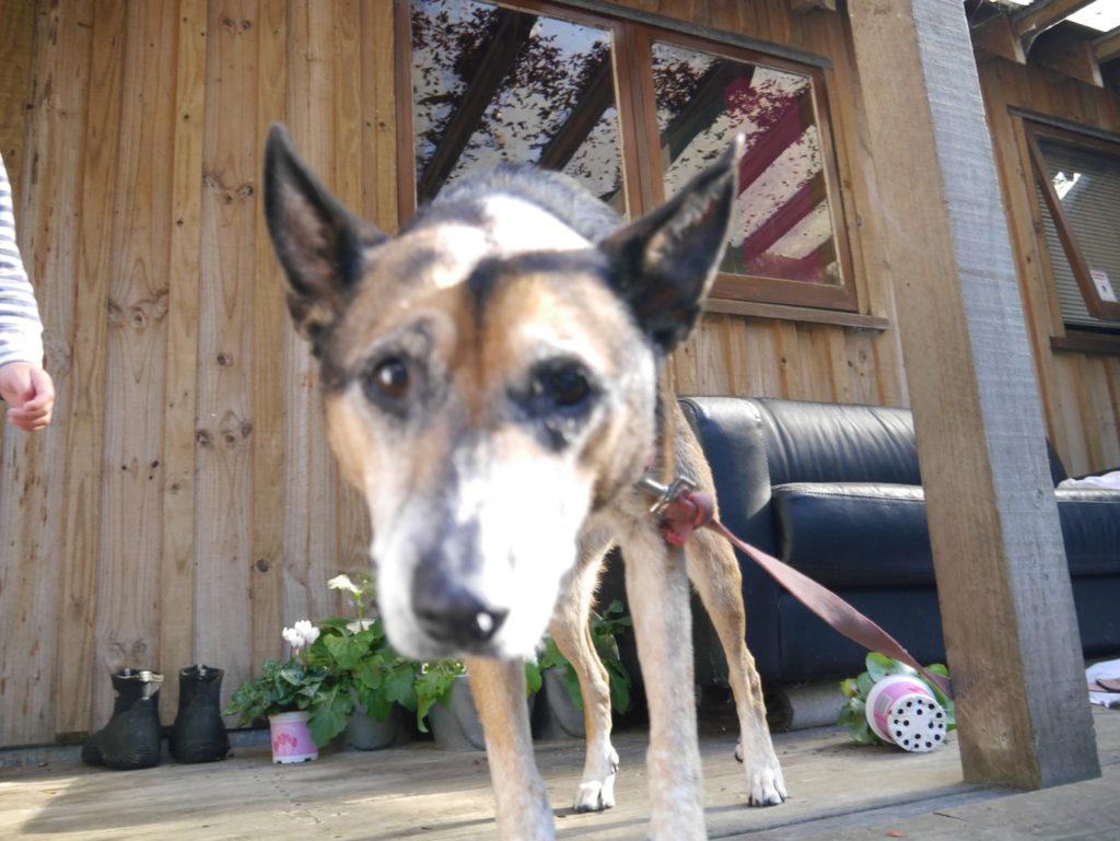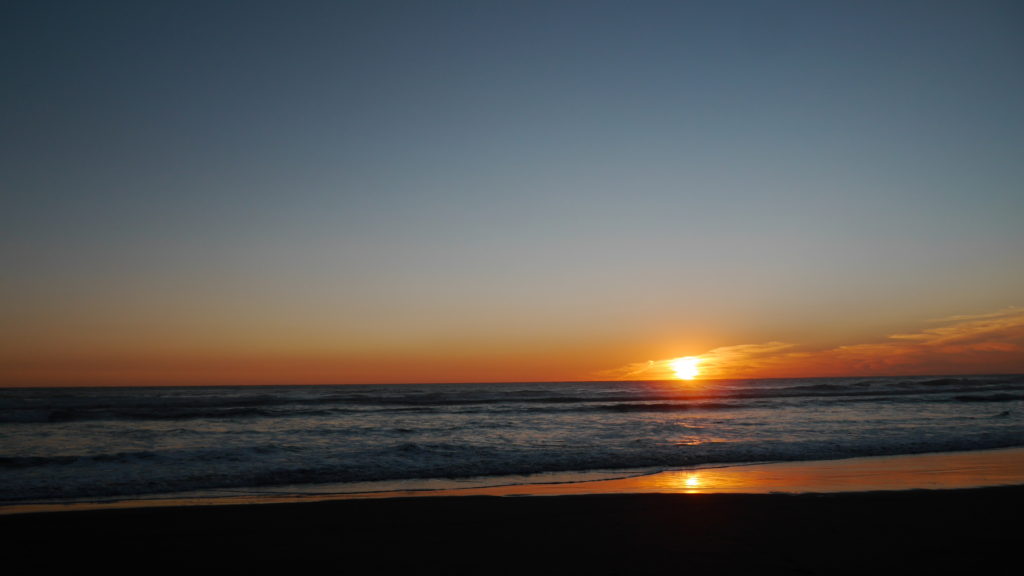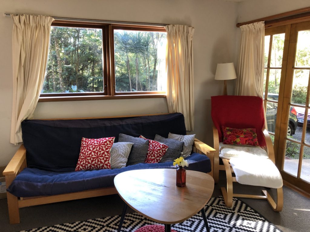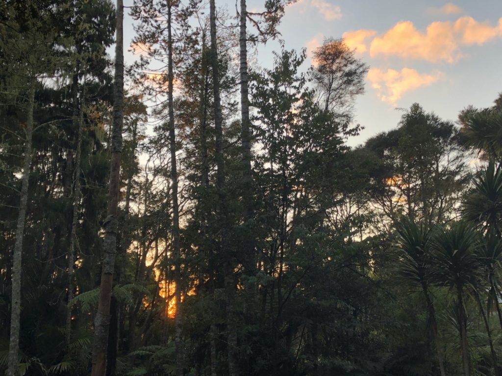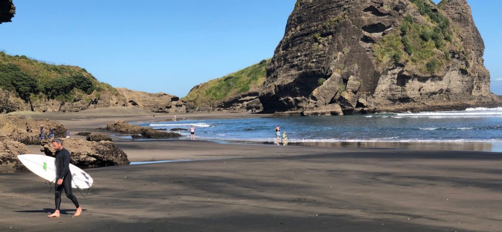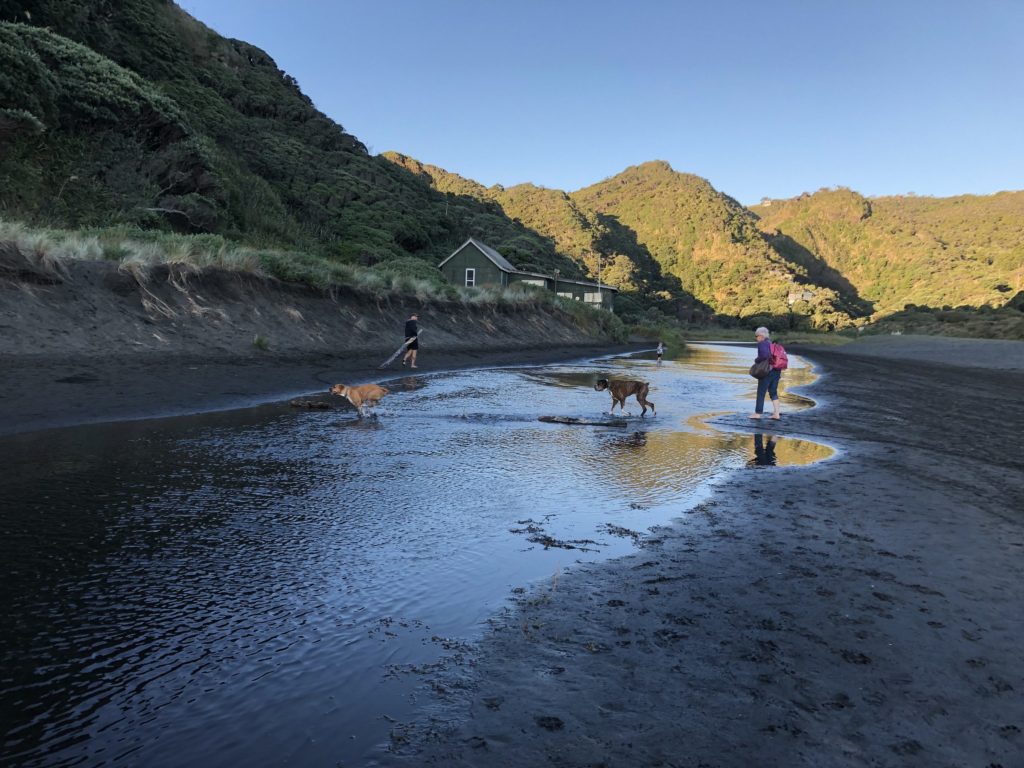 Sunrise Photo by Yoko (Kosuke and Mei were sleeping.)コテージのリビング。朝食。隣に住んでいるオーナーさんのワンワンがソファに座ってこっちを向いている。かわいい。めいさん恐る恐る近づく。Hello?オーナーの Elke さん。写真ではまぶしくて少ししかめっ面に見えますが、とっても優しい方でした。コテージから公道へ出るために原生林に囲まれたこの狭い道を進みます。Piha Beach へ向かう道中での絶景。ビーチの駐車場の近くに人懐こいワンワンがいました。Piha Beach 到着。きれいな海。波が激しくサーファーがたくさんいました。