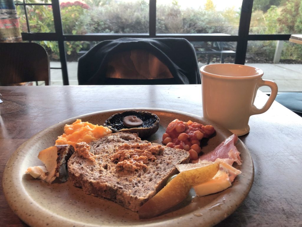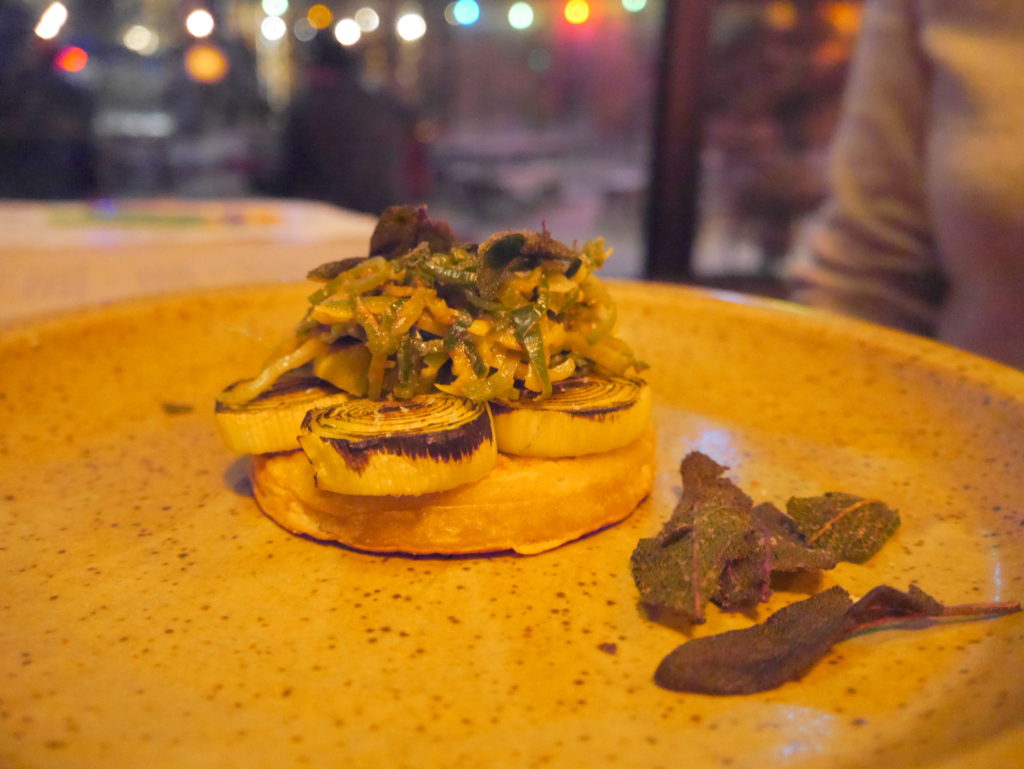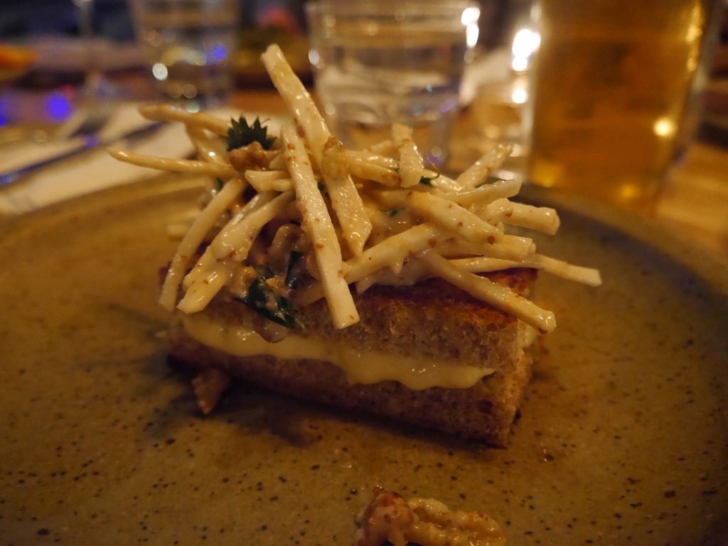 Celeriac & smoked Tania toastie, walnut salad, yeast dressing.