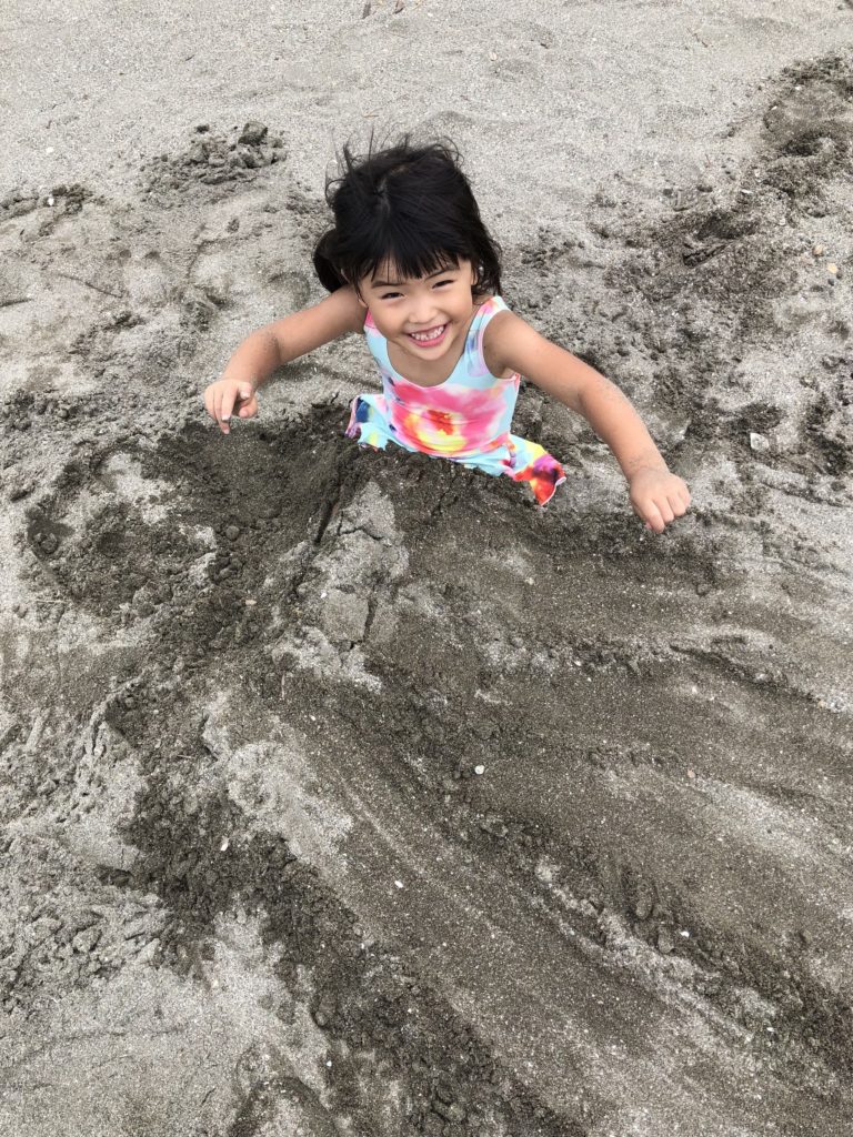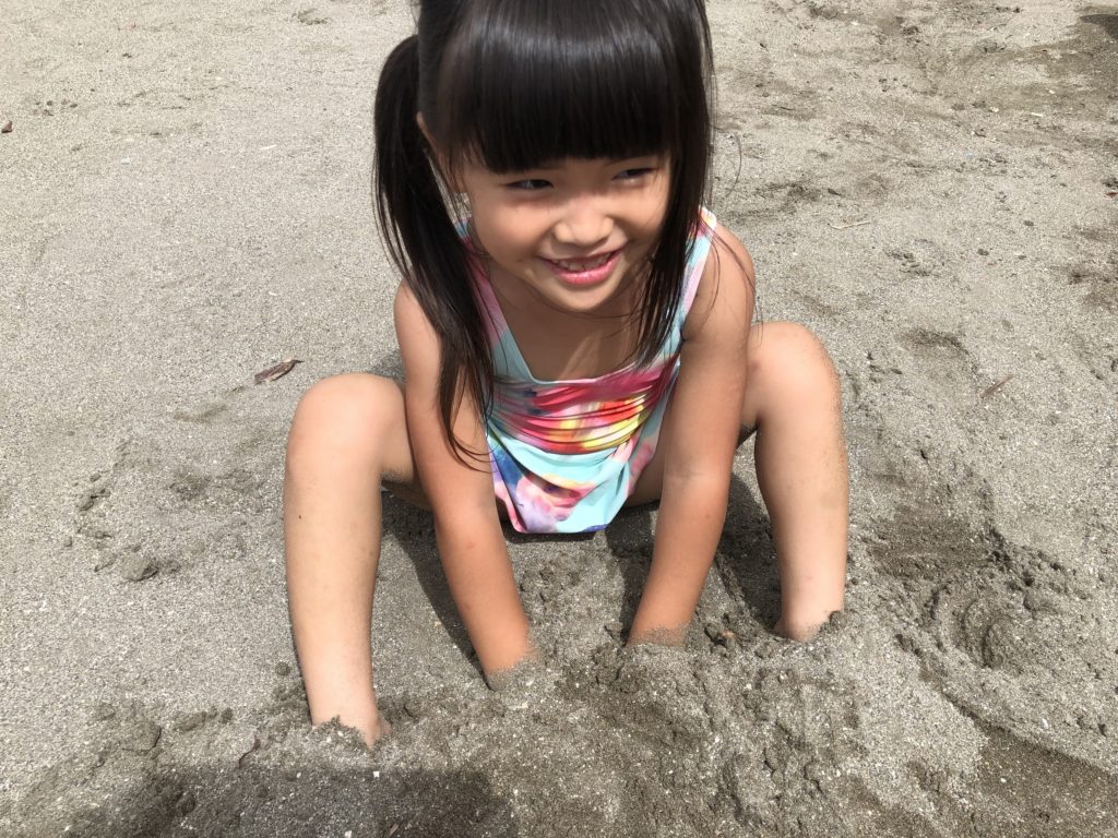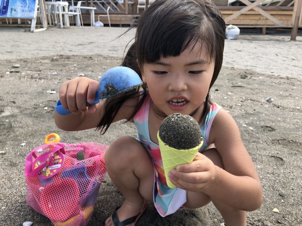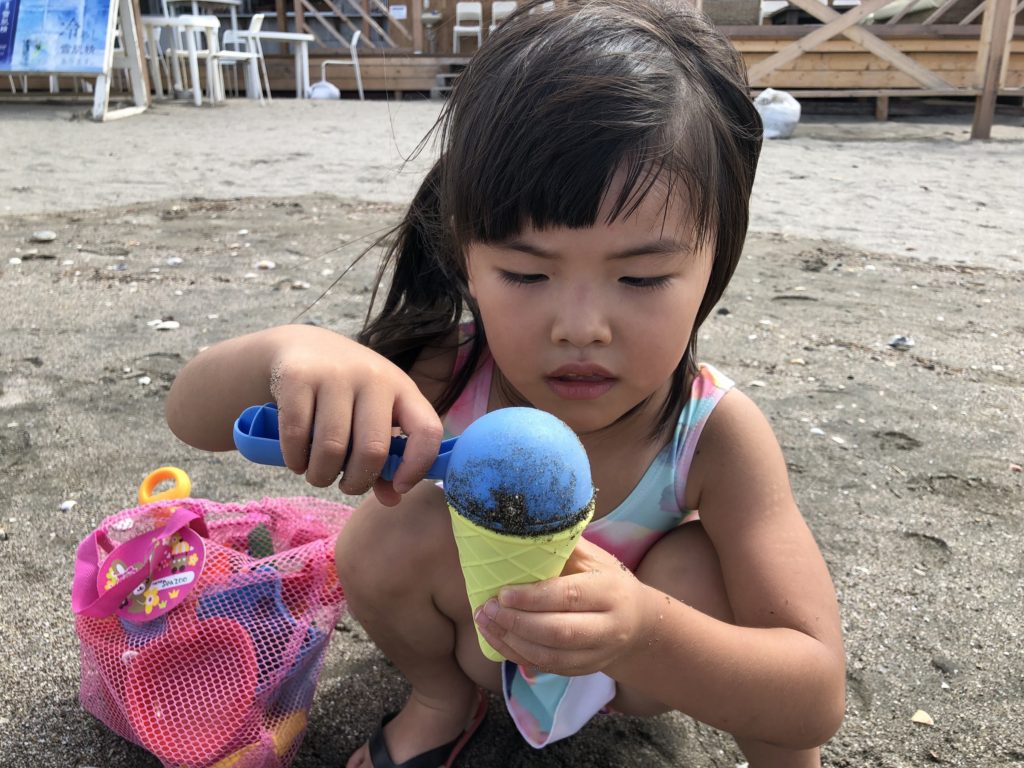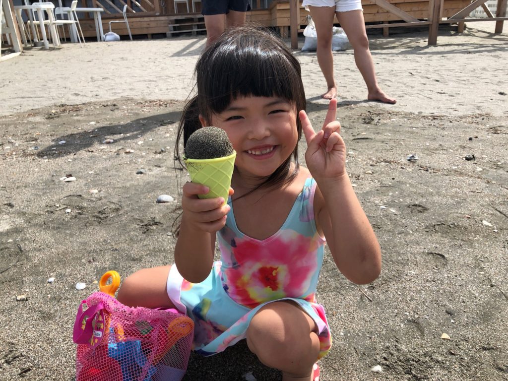 湘南(逗子&江の島)ドライブ めいさん日記 2019.08.172022.06.06 今日はオートマの車をレンタカーで借りて、5年ぶりに葉子ちゃんの運転で、逗子(ずし)と江の島に行ってきました。 めいさんに体を埋めてくれと言われたので、砂をかき集めて埋めてあげました。 お砂場遊びが大好きで、ずっとこれで遊んでました。浮き輪を持って行ったけど波が怖いみたいで、結局海には入りませんでした。 逗子から江の島に移動して、釜揚げしらす丼をいただきました。 めいさんはソフトクリームに目がありません。 路地裏の隠れ家カフェに入ってこうちゃんと葉子ちゃんはコーヒー、めいさんはケーキをいただきました。 以上、めいさんの食べ過ぎレポートでした。おなかがパンパンに張ってます。 コメント