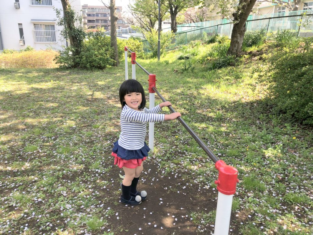 近所の穴場の公園に息抜きに遊びに行ってきました。ここ最近めいさんはてつぼうに興味を持っていたのですが、ついに一人で前回りができるようになりました。