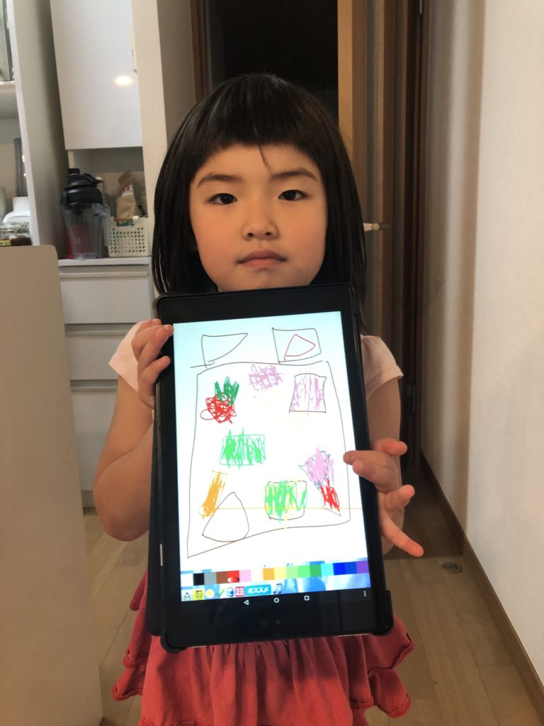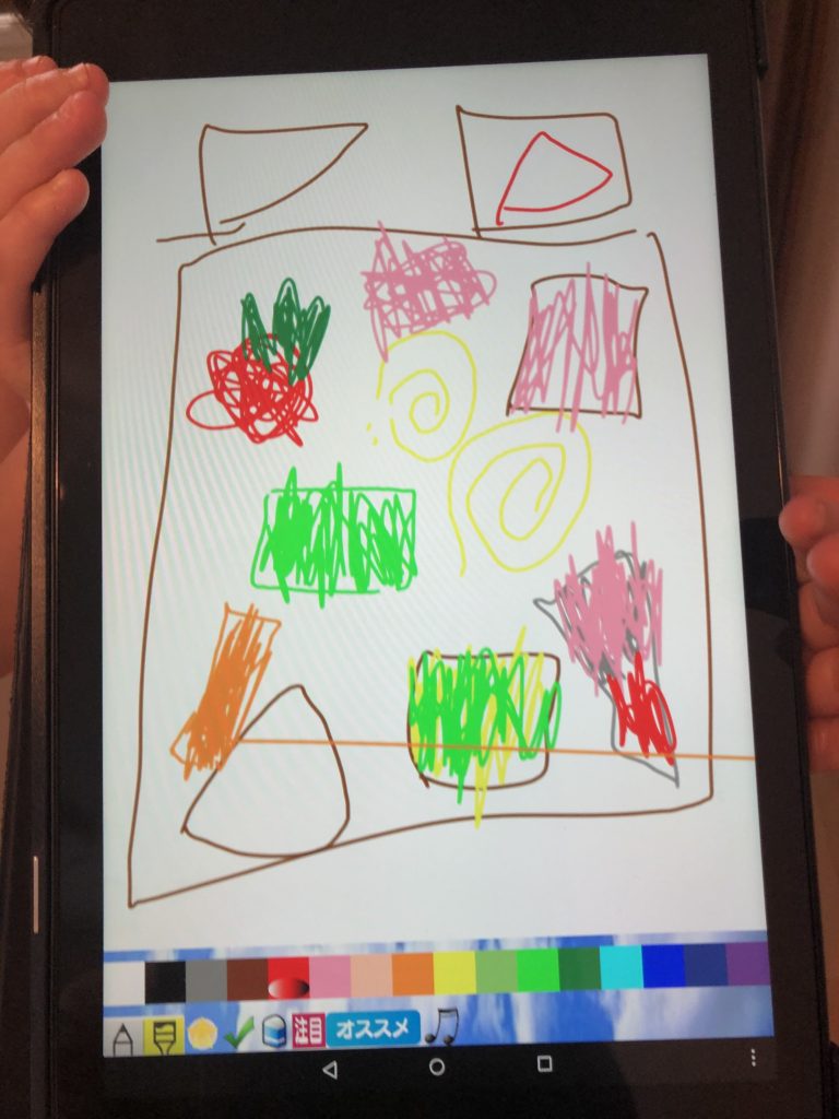こうちゃんのデバイスを使ってお絵かきをしていたら、こんなおいしそうなお弁当ができあがりました。