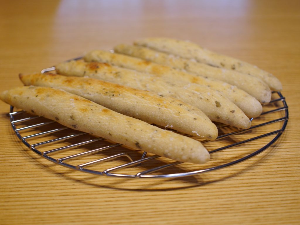 自家製酵母で焼いたグリッシーニ。お店で買ったのかとこうちゃんが間違えるほどおいしかった。