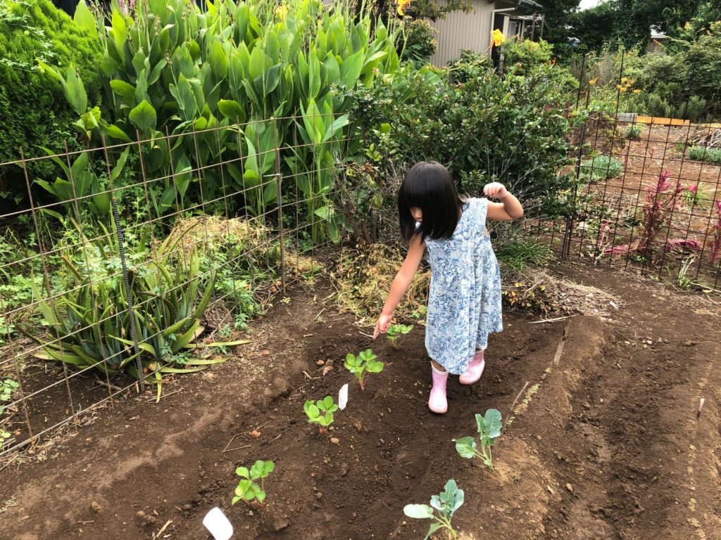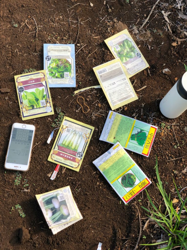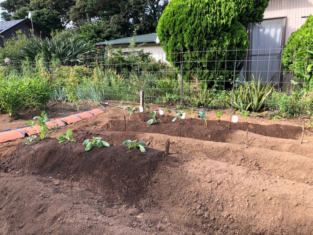 ネギ、カブ、大根、春菊、小松菜、ミツバ、ほうれん草、サラダミックス、の種を蒔きました。それから、キャベツ、ケール、セロリ、茎ブロッコリー、カリフラワー、めいさんの大好きな苺の苗も植えました。ほかにも、そら豆、赤キャベツ、にんにくも育てる予定です。