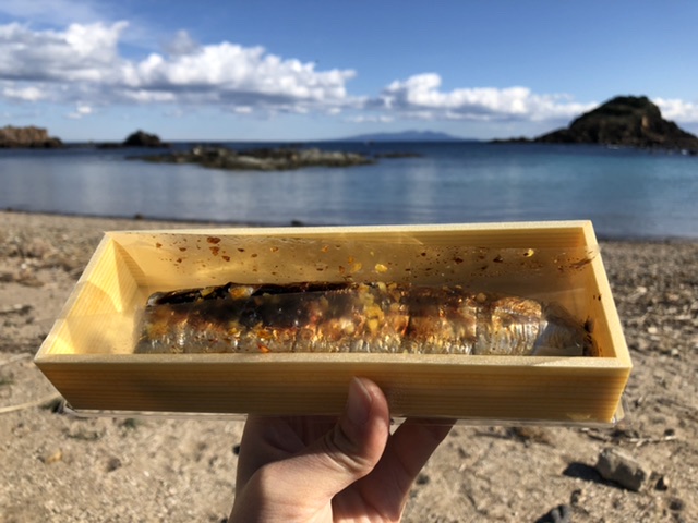 めいさんが、「何か食べたい!」とのことで、ひじきのおやきと炙りさんま寿司を買いました。さんま寿司はめいさんの好物です。