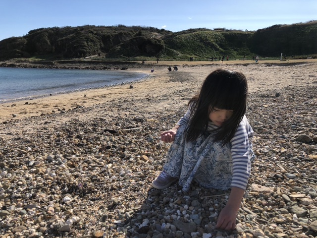 お腹も満たされて貝殻拾いをして遊びました。