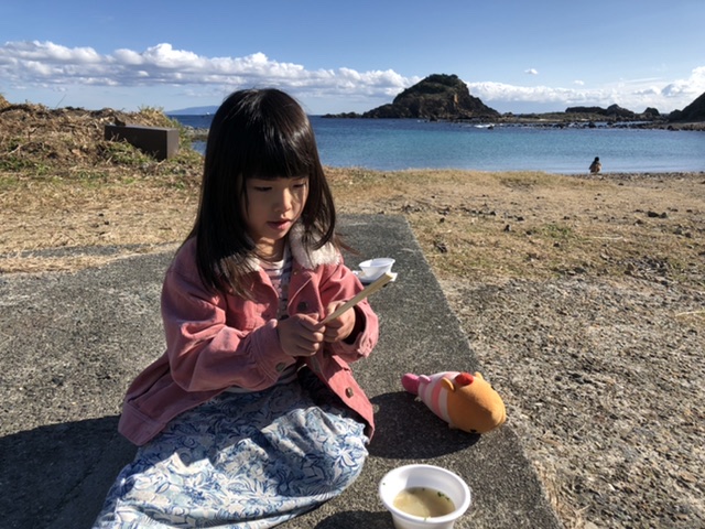 近くのビーチ(爪木崎)では12月から1月にかけて水仙が美しく咲き誇り、その間「水仙まつり」が開催されます。今日は水仙まつりの初日ということで、めいさんと一緒に遊びに行ってきました。