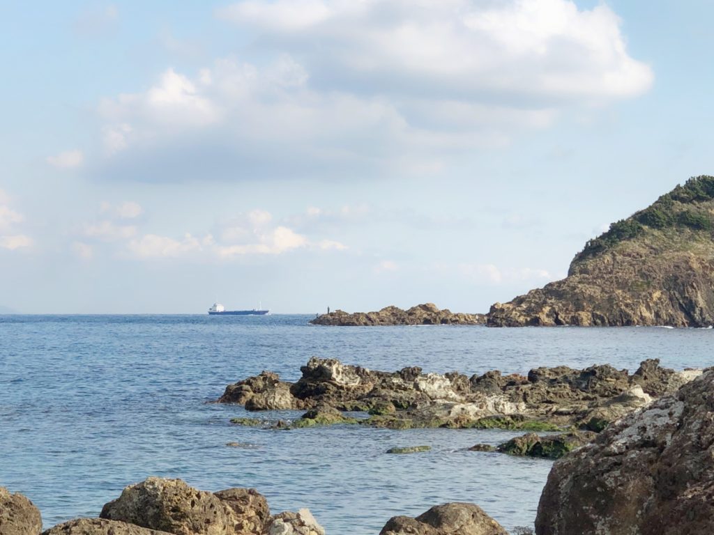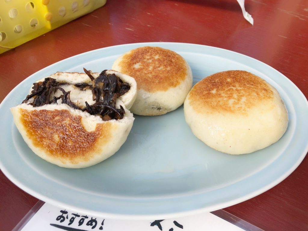 爪木崎でやっている水仙まつりの屋台にお昼ごはんを食べに来ました。今回は大家さんと、同じ敷地内に住んでいるママと1歳半の男の子も一緒です。