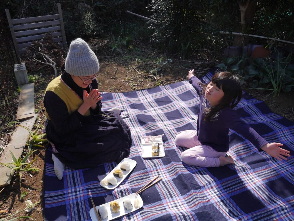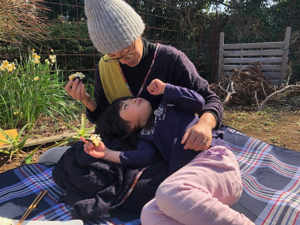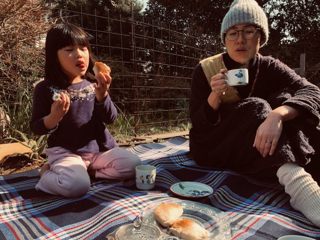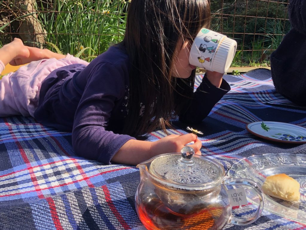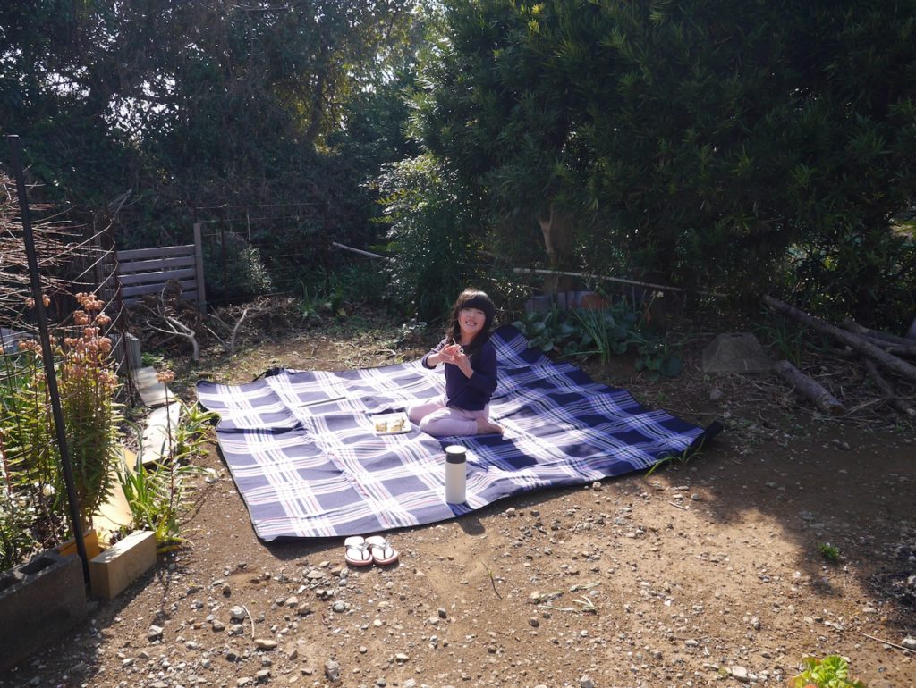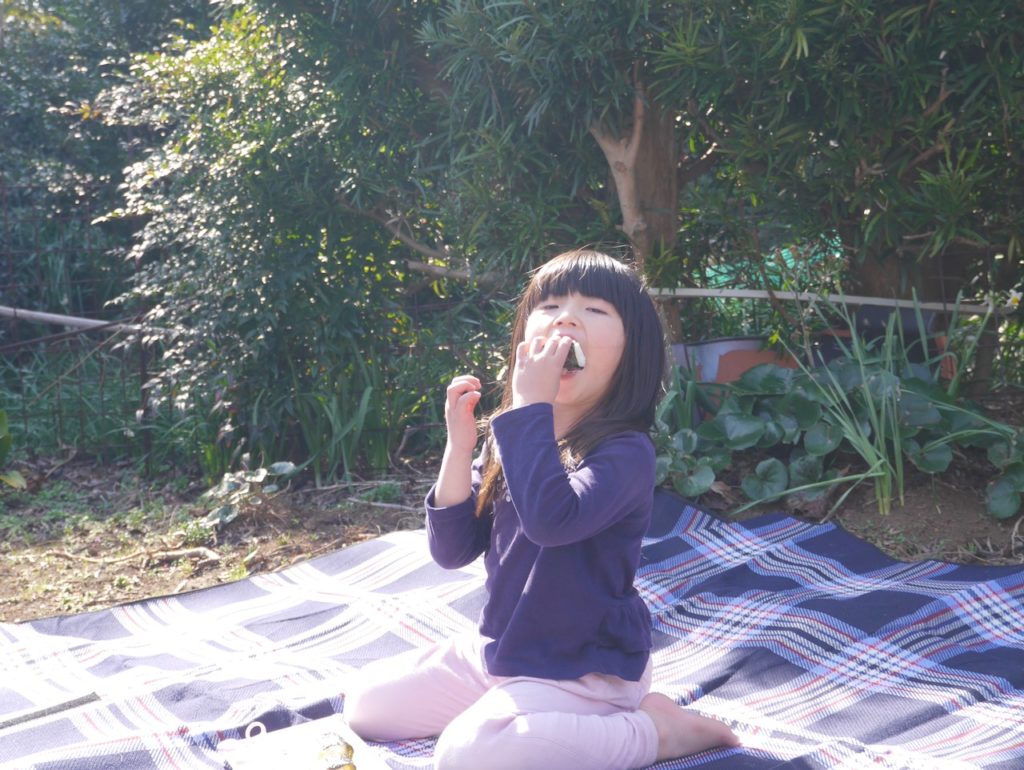 お庭の桜の花がかわいらしく咲いてきたので、昨日お花見ピクニックをしました。