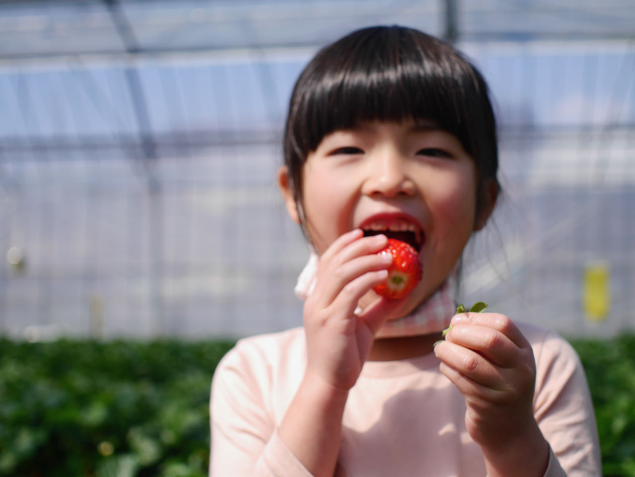 めいさん日記 いちご狩り めいさんが春休みになったらいちご狩りに行きたいと言っていたので、昨日、なごみ果園にいちご狩りに行ってきました。きらぴ香と紅ほっぺの2種類を食べました。甘くて美味しかったです。 2021.03.25 めいさん日記