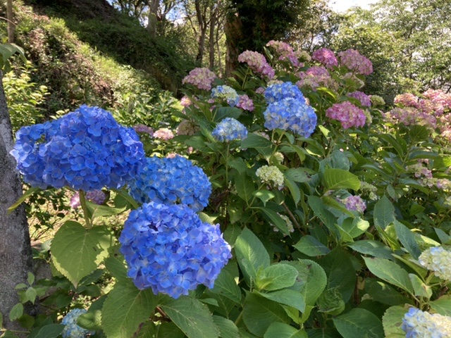 めいさん日記今日はめいさんと一緒に下田公園とペリーロードの散策を楽しみました。下田公園では紫陽花が咲き始めていました。