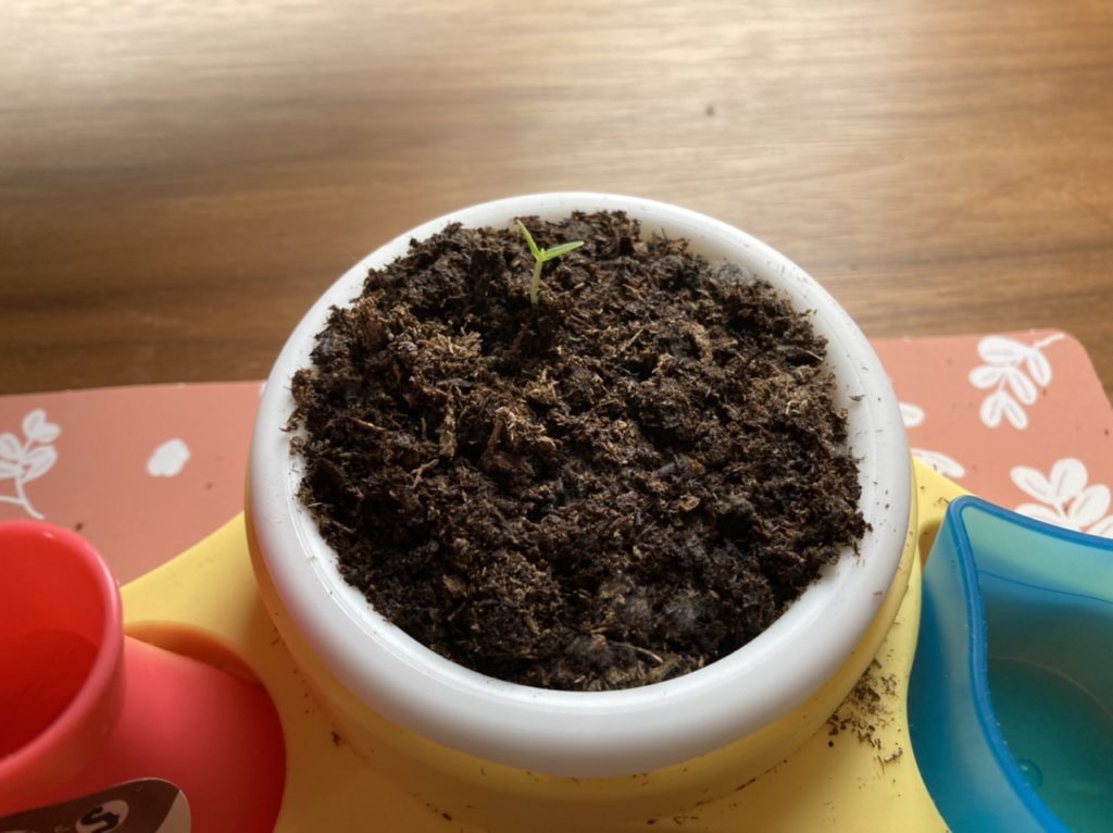 ぺこたんの成長 めいさん日記 2021.05.30 5/24(月)に種をまいたおじぎそうのぺこたん。5/28(金)にひとつめの芽が出てきました。幼稚園から帰ってきて、芽が出ているのを発見して大喜び。 昨日5/29(土)、しよう(ふたば)が誕生。ぺこたんのお誕生日です。 おじぎそうが成長していく様子をおさめました。太陽の光に向かって成長しています。 コメント