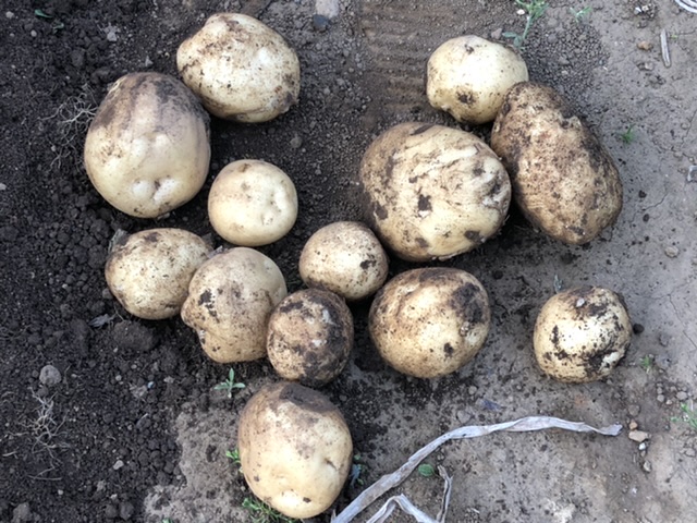 これが親芋。春、食べきれずに発芽してしまったじゃがいもが2個あったので試しに畑に植えてみたら沢山じゃがいもができました♪