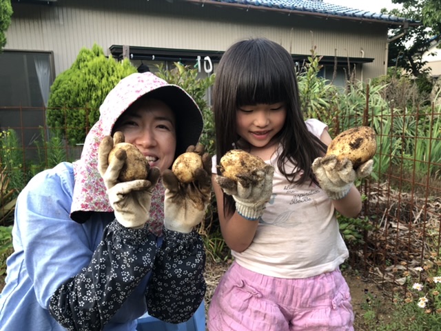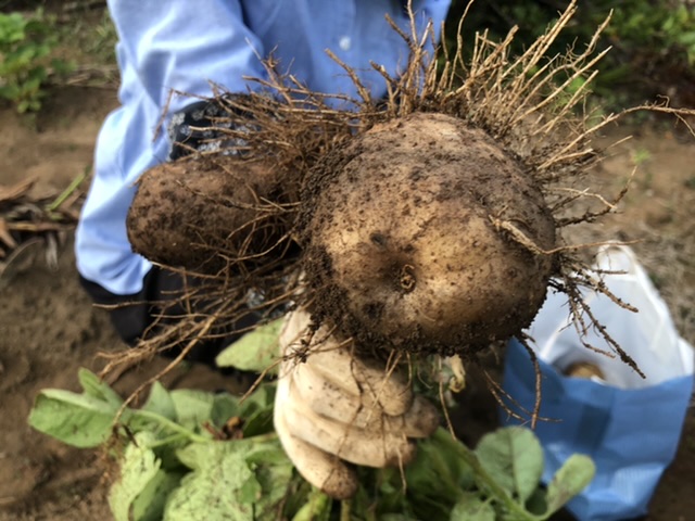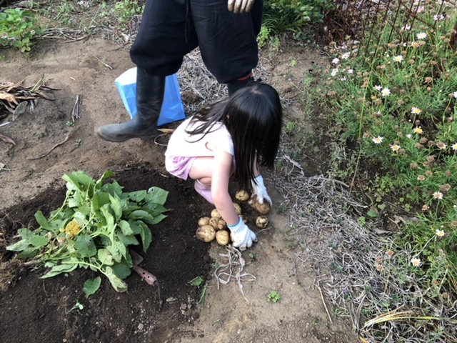 めいさんが畑のじゃがいも掘りのお手伝いをしてくれました。