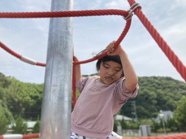 色々な遊具があり、めいさんは公園に着くとまずこの遊具に挑戦!