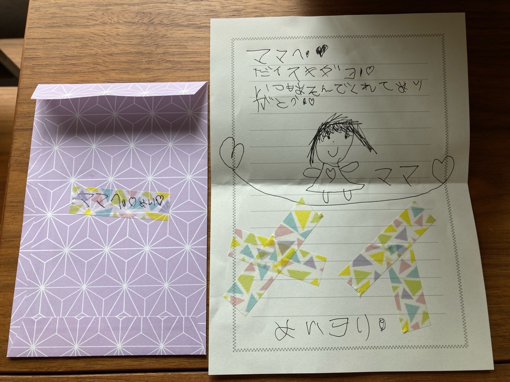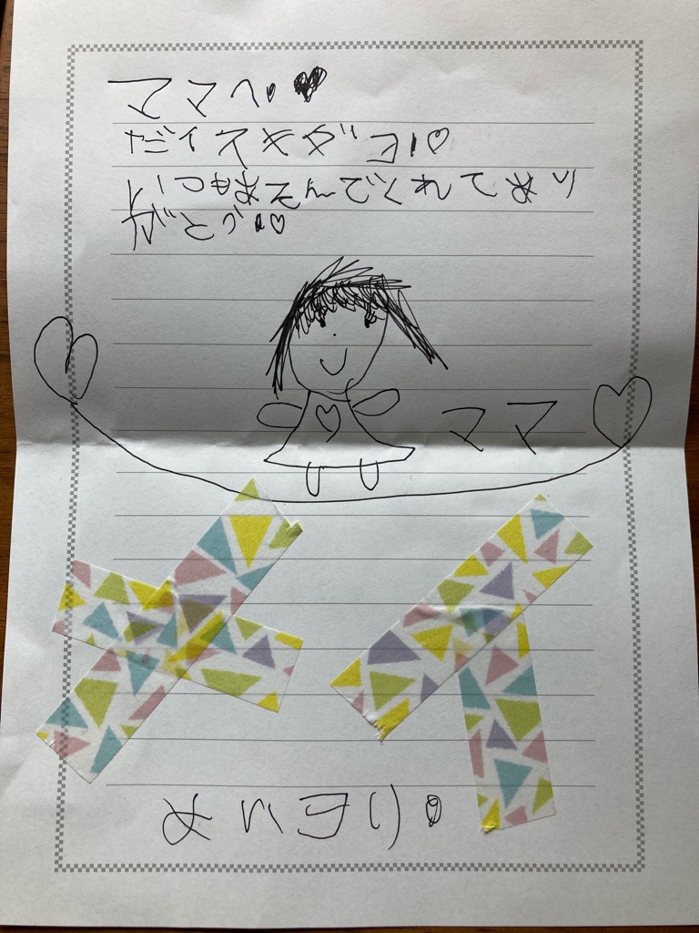 公園から帰ってきてお昼ご飯を食べた後、こんな可愛いお手紙を書いてくれました。