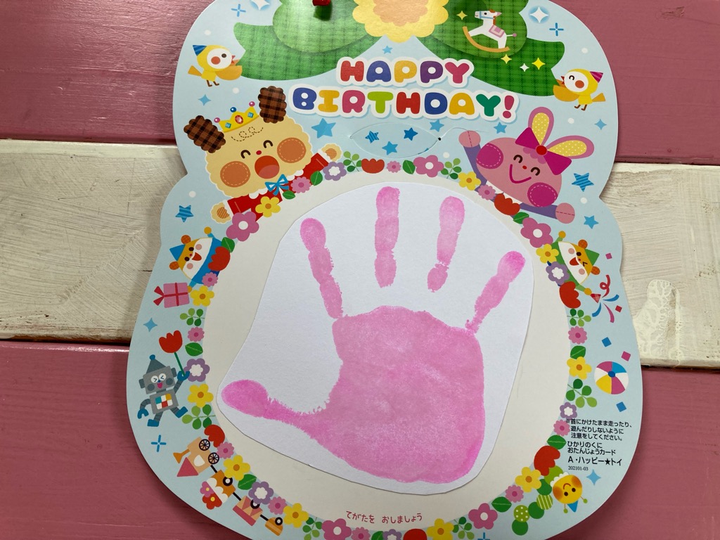 今日幼稚園で7月生まれと8月生まれのお友達の合同誕生日会が開かれました。めいさんは昨日からお誕生日会を楽しみにしていました。お誕生日会ではお歌を歌ったり、誕生日カードをもらったりするそうです。めいさんがもらってきた誕生日カードです。