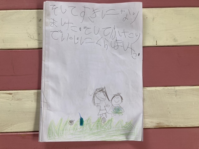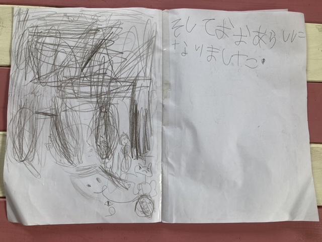 めいさんはジブリ映画が好きで「もののけ姫」も何度か鑑賞しています。映画を観た後、自分でもののけ姫の絵本を作りました。