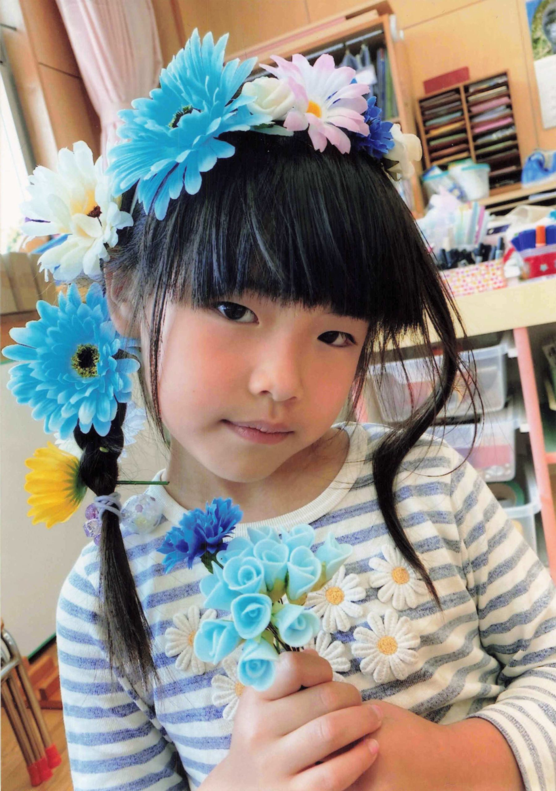 めいさん日記 幼稚園の写真 幼稚園から1学期の写真をもらってきました。*他の園児も写っているので写真の取り扱いにはご注意ください。幼稚園の先生にお花で可愛く飾りをつけてもらいました。7月・8月生まれの合同お誕生日会のときの写真。一緒に写っているのはめいさんが好きな男の... 2021.10.29 めいさん日記