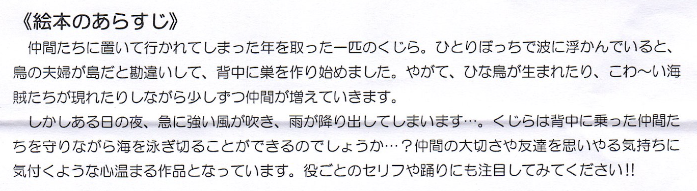 オペレッタの題材は「海にぽっかりくじらじま」です。