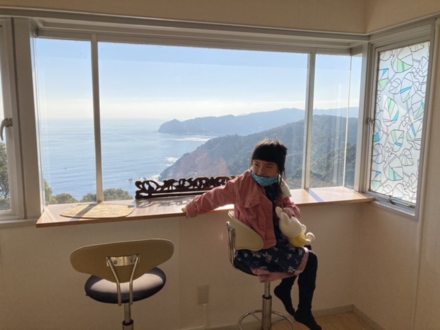 めいさんも窓際のチェアに座って景色を堪能していました。