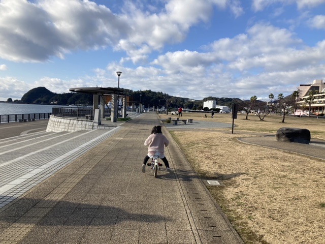 「今日ママと何して遊びたい?」と聞くと「自転車の練習をしたい!」と返ってきたので、まどが浜海遊公園に遊びに行ってきました。