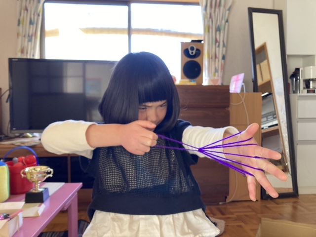 今日はあやとりに挑戦しました。ほうきを作ることができるかな?