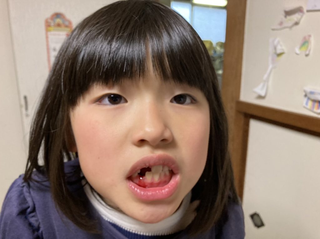 下の歯が抜けました。「もう少しで小学生になるからじゃない ?」とめいさんは言っていました。