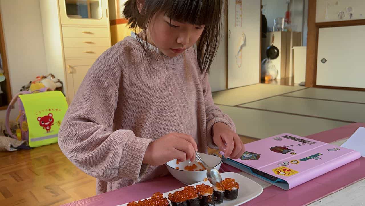 小学校入学お祝いデザート&お寿司 めいさん日記 2022.04.10 4月7日が入学式でしたが、当日の朝熱が出たので残念ながら入学式は欠席しました。翌日8日には元気になり学校には行きませんでしたが、おうちで入学のお祝いをしました。 めいさんが大好きな苺のデザートを葉子ちゃんが作ってくれました。 晩ごはんはめいさんが好きなイクラのお寿司です。めいさんが自分でイクラを乗せました。 明日、4/11(月) は初めて小学校に登校します。 コメント