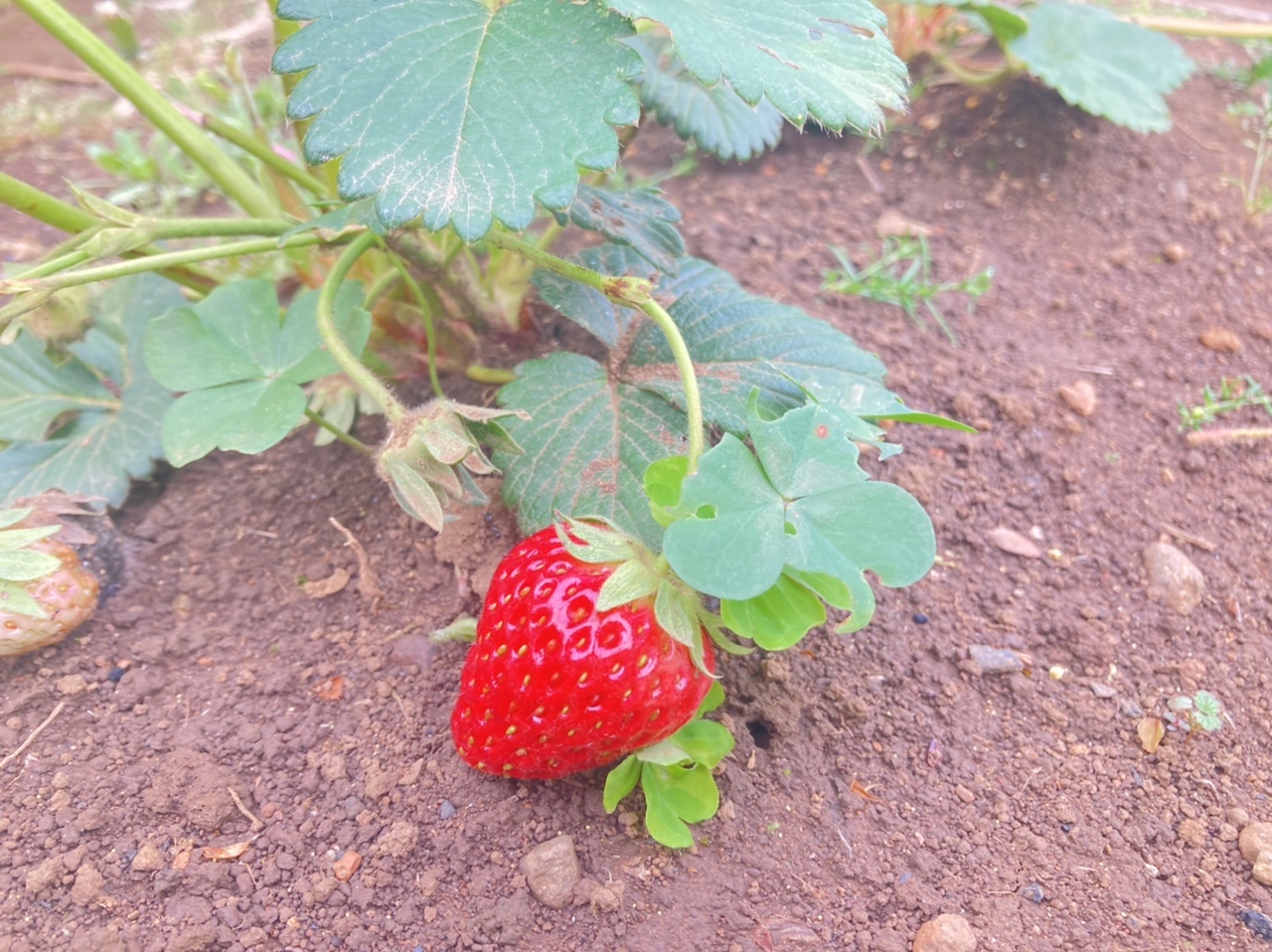 畑に苺がなりました。