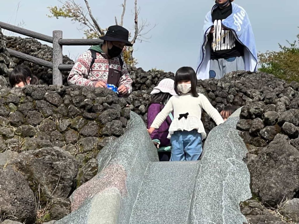 溶岩でできた大きなすべり台を何度も滑りました。