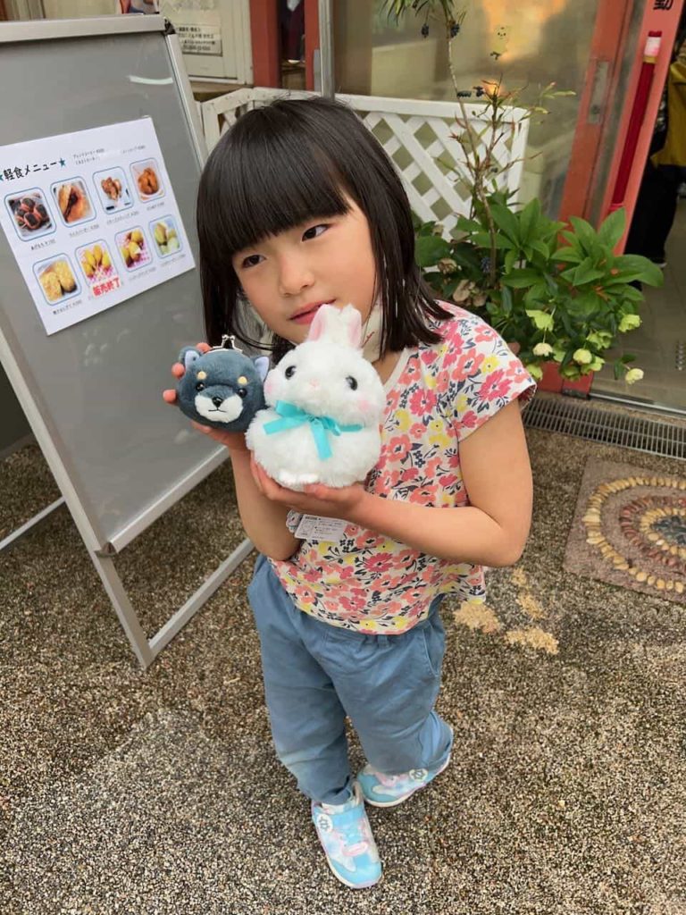 最後にお土産屋さんでウサギさんのぬいぐるみをゲットして大満足のご様子でした。