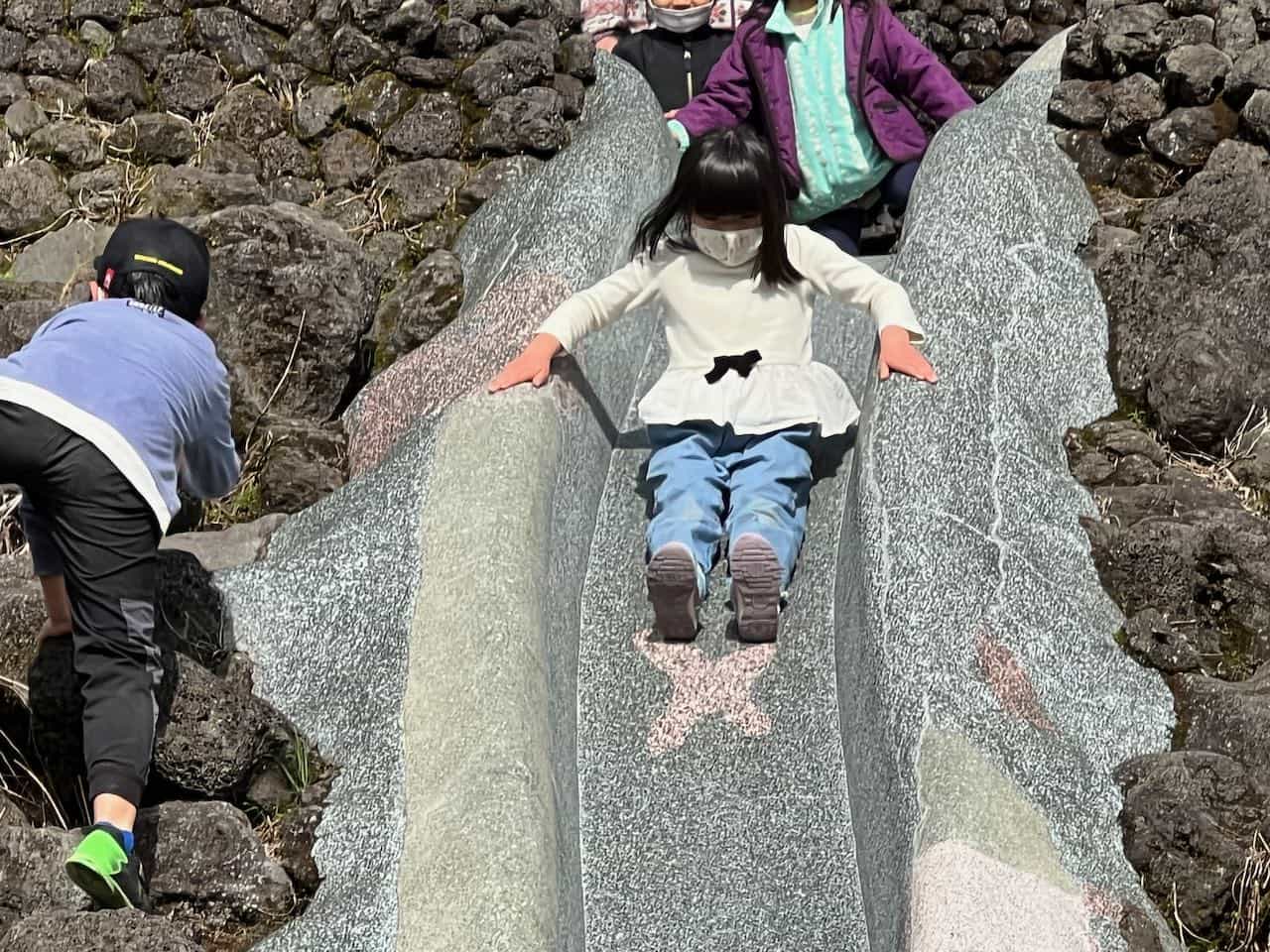 溶岩でできた大きなすべり台を何度も滑りました。