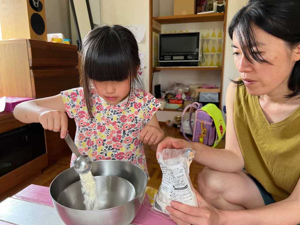 学校の図書室でめいさんがスイーツ作りの本を借りてきました。