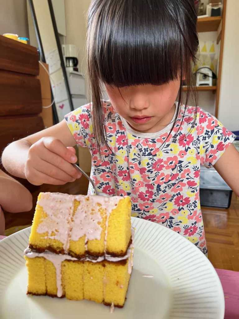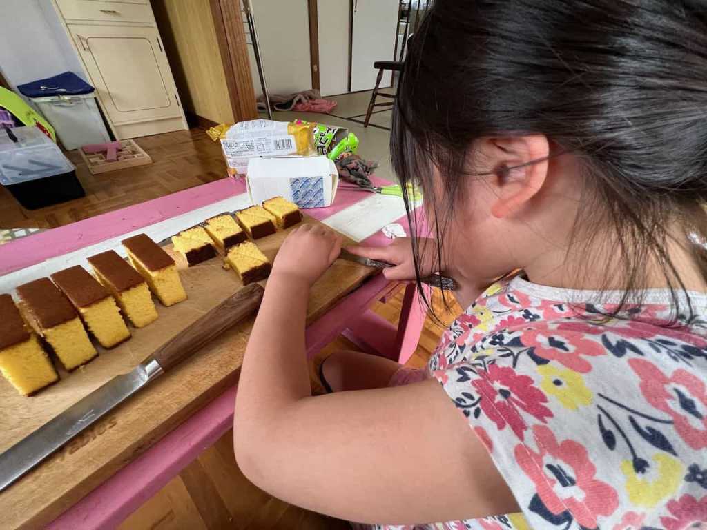 カステラをカットします。