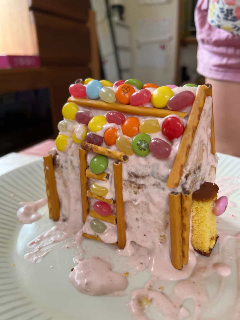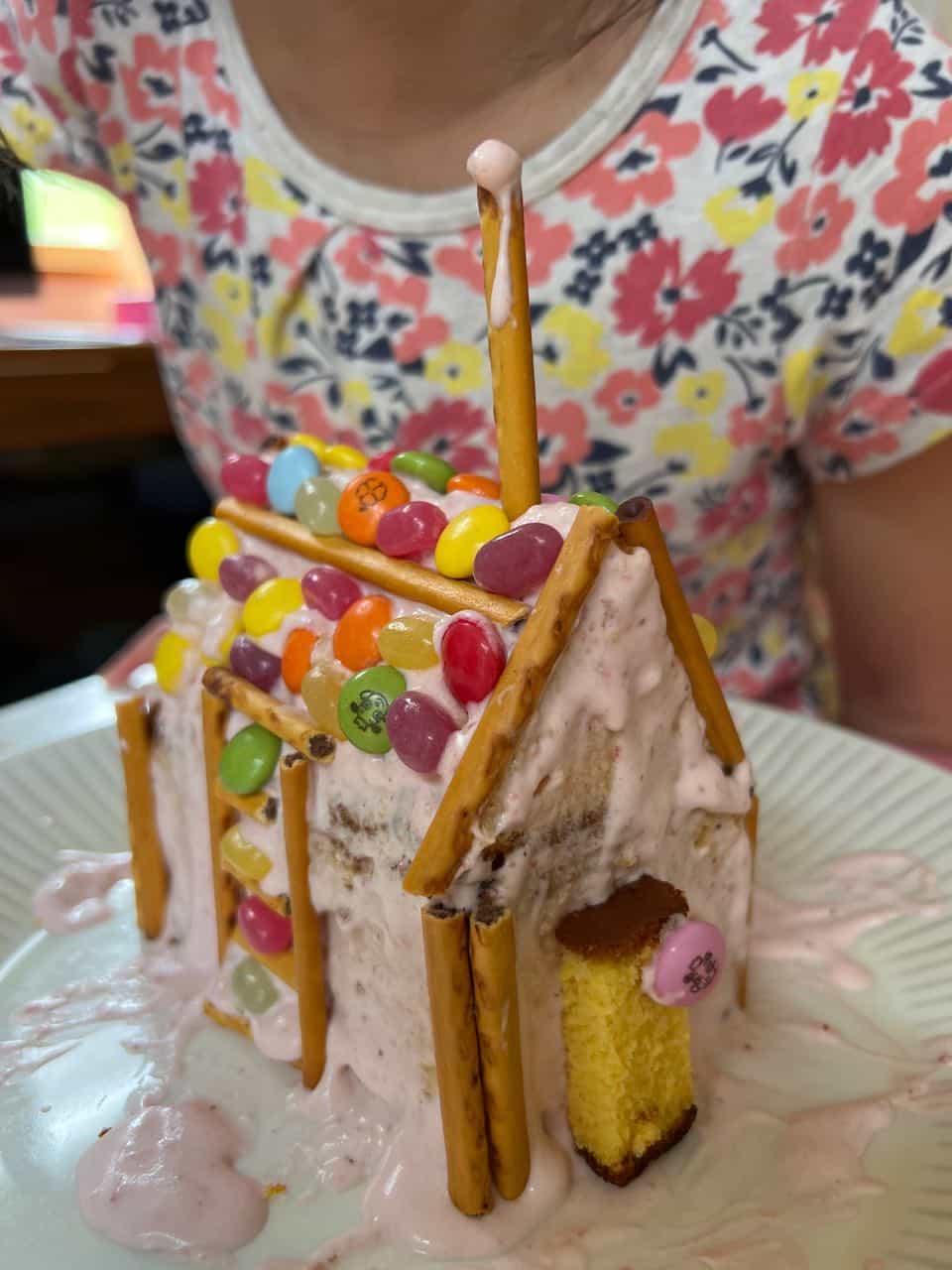 めいさんの色づかいは昔から素敵だなぁと感じています。煙突も良いアイデアですよね。めいさんは食べるのがもったいないという考えはほとんどなく、完成後すぐにかぶりつきました。