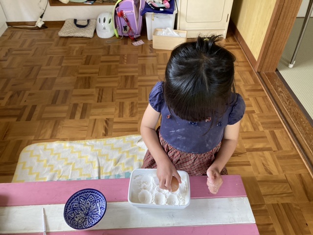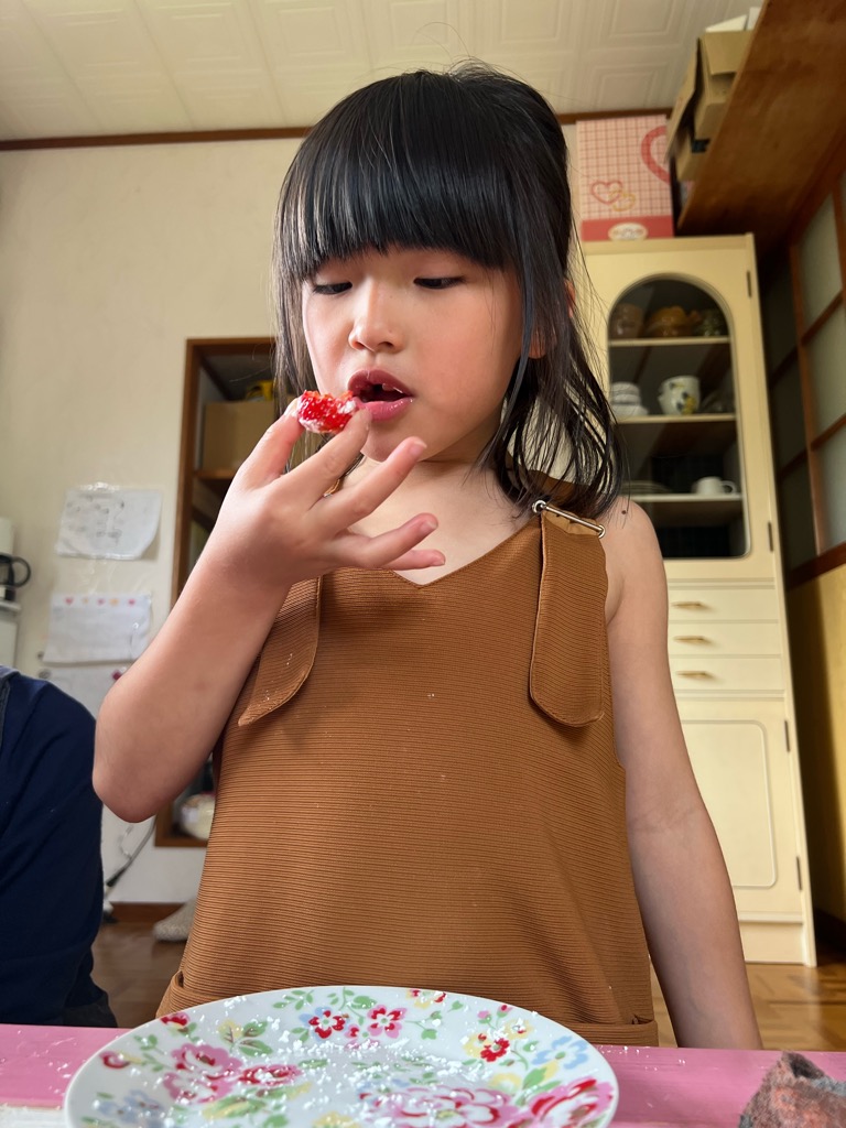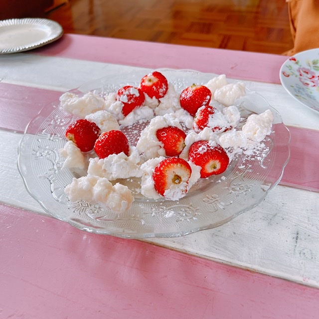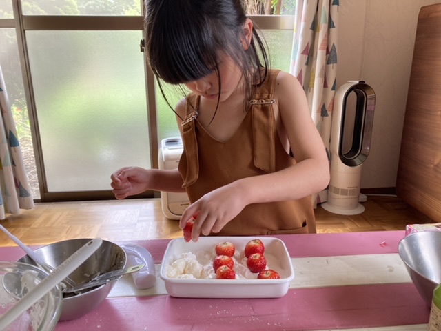 いちごマシュマロ作り めいさん日記 2022.05.232022.06.05 5/15(日)、めいさんが学校の図書室で借りてきたスイーツの本を見ながら、いちごマシュマロを一緒に作りました。まずはいちごを洗います。 卵の殻を使ってマシュマロの型を作ります。 卵を上手に割ることができるようになりました。 ハンドミキサーで卵白を泡立てます。 マシュマロにいちごをのせます。 完成 ! 少しマシュマロが柔らかくなってしまって、形が上手く出来なかったけれど、「ふわふわして美味しい〜♡」とめいさんは大喜びでした。 コメント