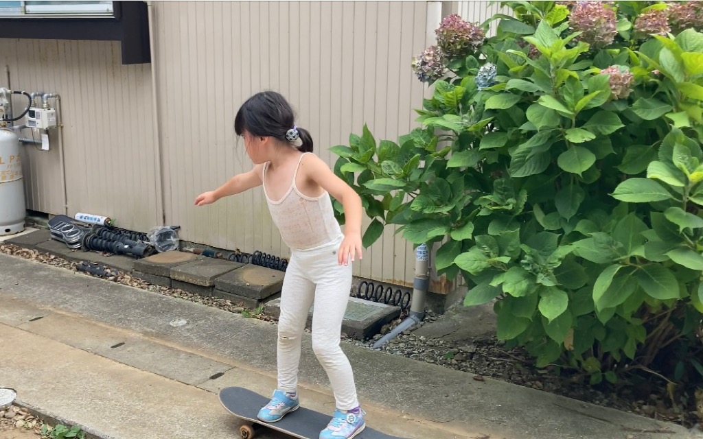 りまくんの家にあるスケボーで時々遊ばせていただいていたようで、スケボーが少し出来るようになっていました。