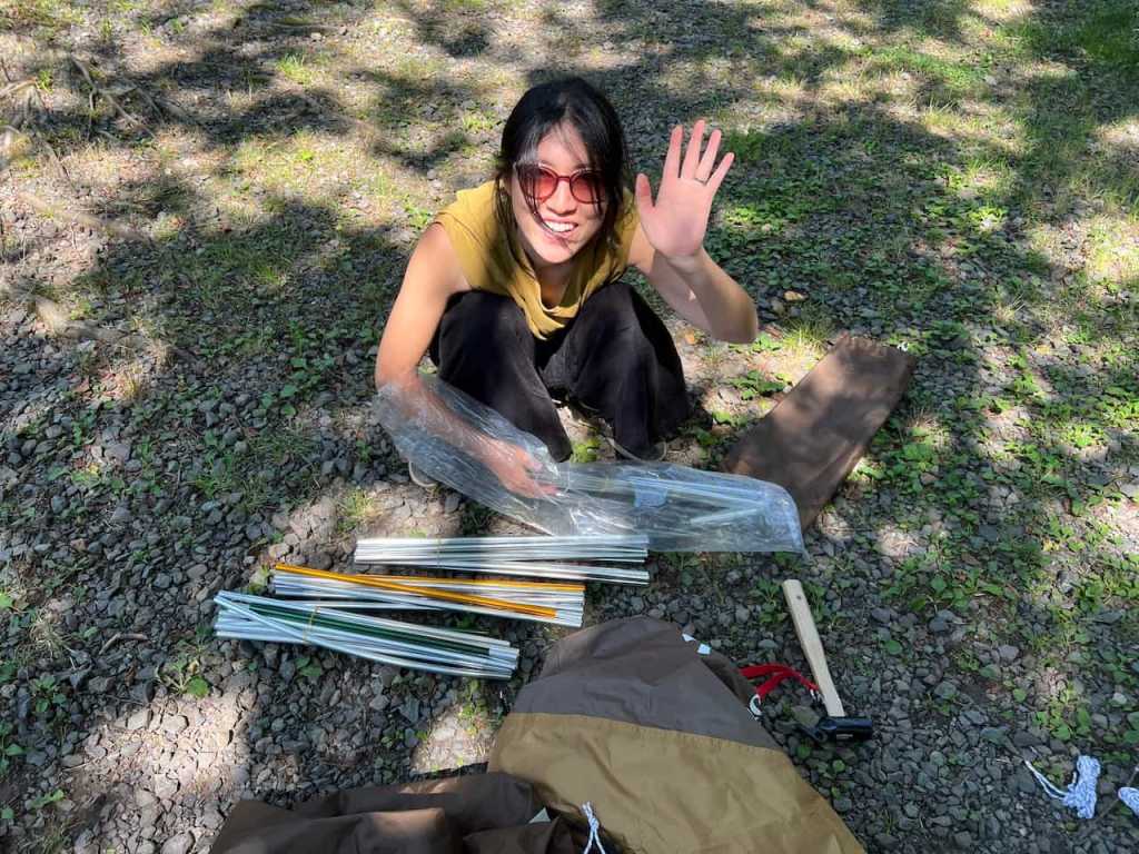 こうちゃんと葉子ちゃんはテントの設営をします。